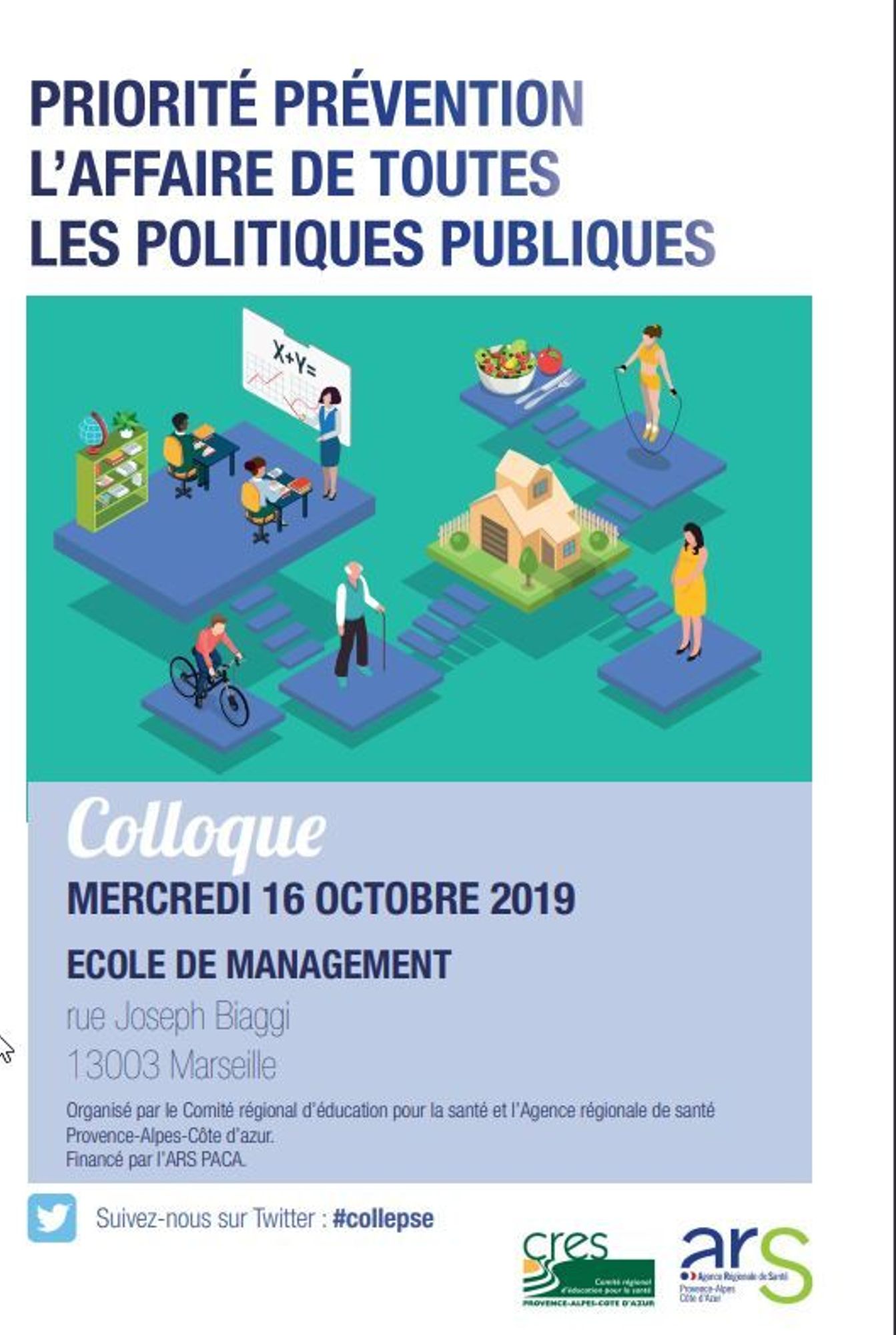 Le CRES et l'ARS Provence-Alpes-Côte d'Azur organisent un colloque à Marseille le 16 octobre 2019 sur le thème : "Priorité prévention : l’affaire de toutes les politiques publiques" .