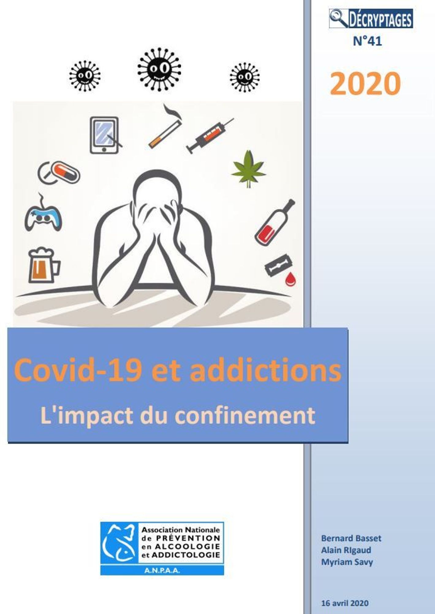 L'Association nationale de prévention en alcoologie (ANPAA), propose dans sa revue Décryptage, un dossier sur l'impact de la pandémie de Covid-19 sur les conduites addictives. Le confinement mis en place pour interrompre la circulation du virus a fait sentir ses effets sur la circulation des drogues ou sur les comportements addictifs de manière parfois spectaculaire. Ses effets portent aussi bien sur les consommations que sur les pratiques d'accompagnement et de soins aux personnes en difficulté avec ces conduites.