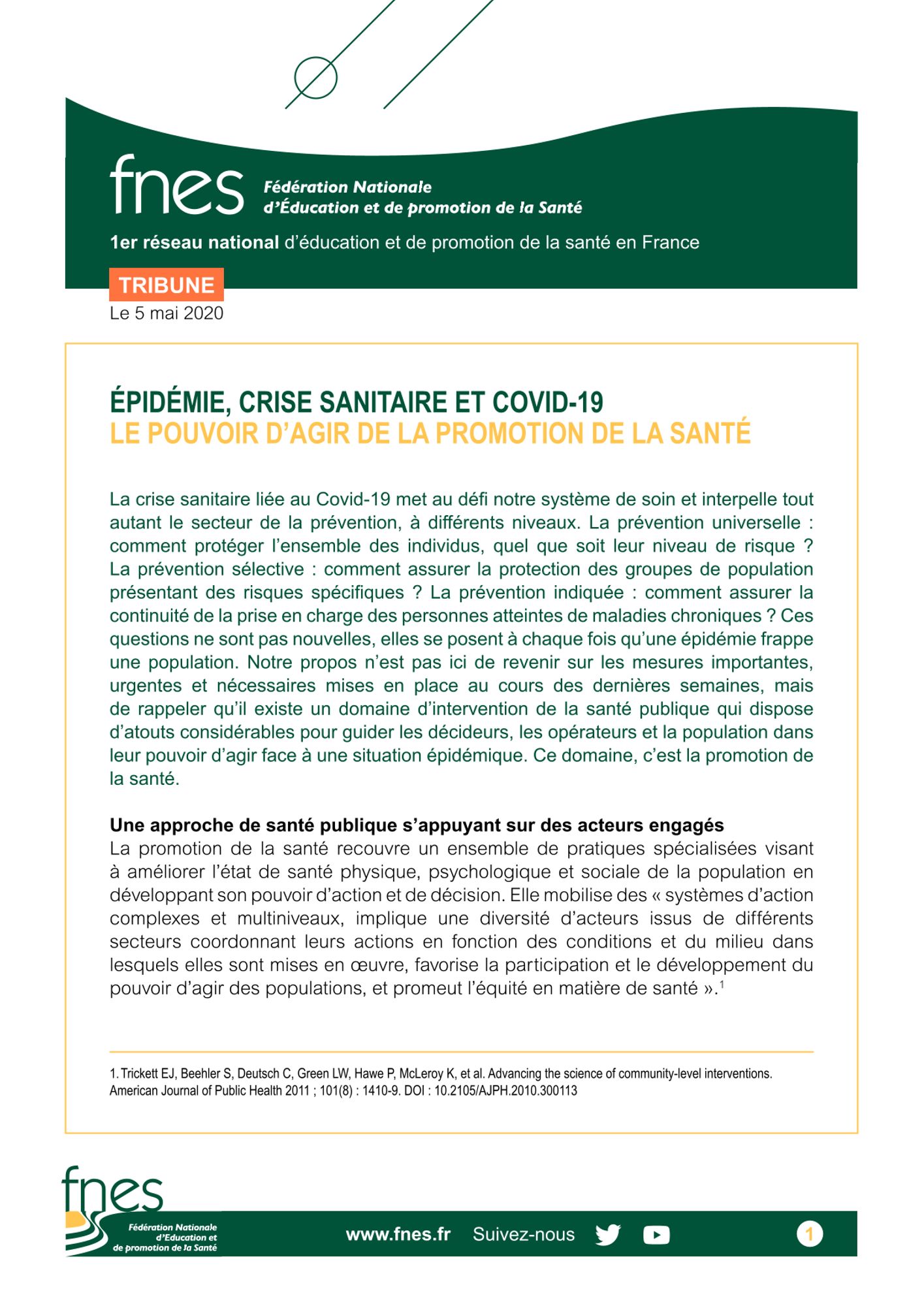Épidémie, crise sanitaire et Covid-19. Le pouvoir d'agir de la promotion de la santé