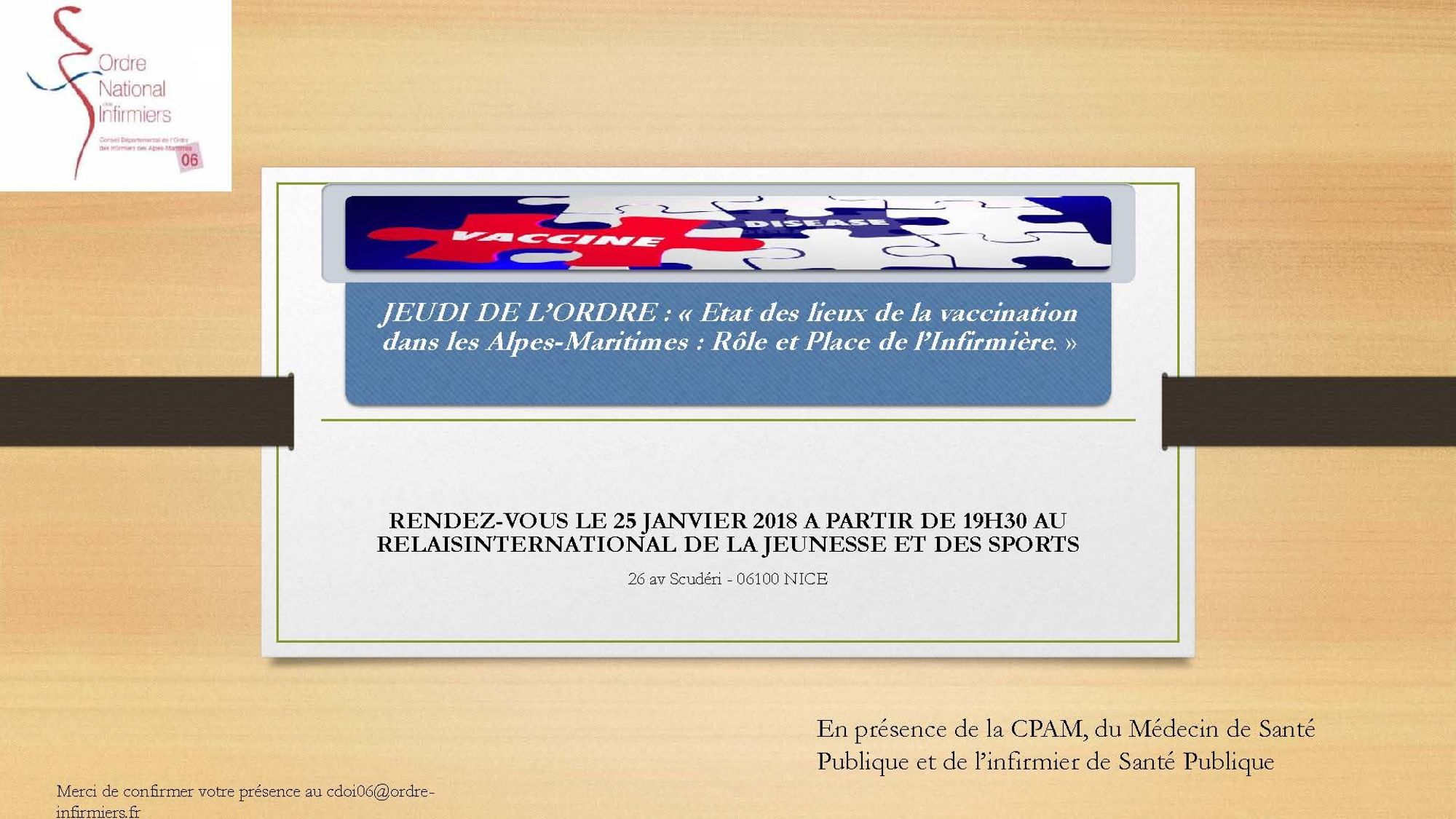 Jeudi de l'ordre : Etat des lieux de la vaccination dans les Alpes-Maritimes : Rôle et place de l'infirmière