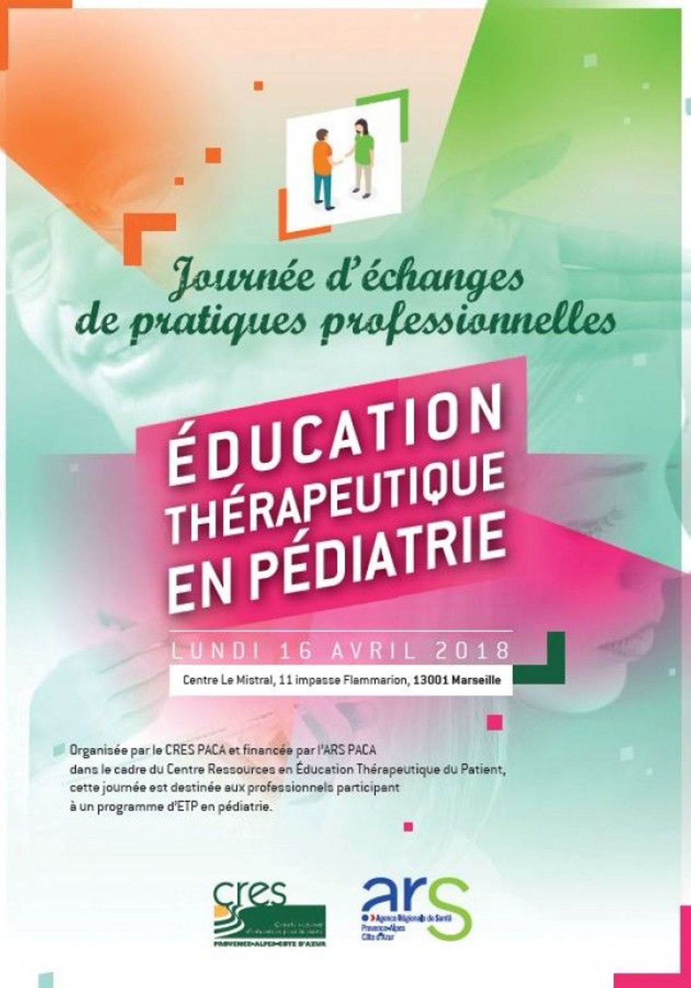 Une journée d'échanges est organisée pour les professionnels impliqués dans l'éducation thérapeutique du patient (ETP) le 16 avril 2018 au Mistral, à Marseille, par le CRES et l'Agence régionale de santé PACA.