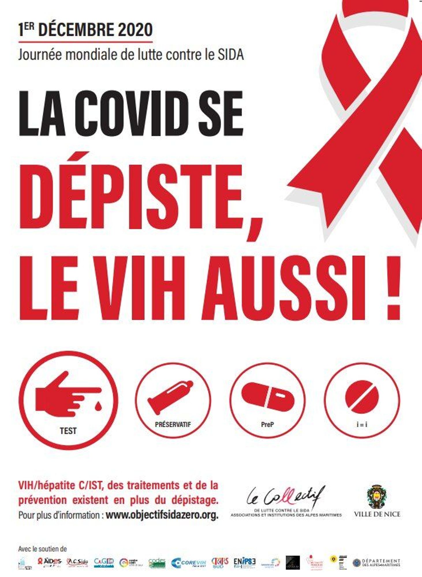 La crise sanitaire due au Covid-19 déstabilise profondément et durablement l’activité de dépistage du VIH et le déploiement de moyens de prévention comme la prophylaxie pré-exposition, alors que les nouvelles découvertes de séropositivité VIH enregistraient un recul significatif dans les Alpes-Maritimes avec une baisse de 40% entre 2015 et 2018. Afin d’éviter un recul de plusieurs années dans les acquis de la lutte contre le VIH, les acteurs locaux se mobilisent à l’occasion de la journée mondiale de lutte du Sida et veulent rappeler que chacun-e, en prenant soin de sa santé sexuelle, en utilisant le moyen de prévention qui lui convient, peut contribuer à stopper les nouvelles transmissions et aider à mettre fin au sida. Malgré le confinement, il est primordial de ne pas retarder un test de dépistage. De nombreux lieux sont ouverts près de chez vous dans lesquels vous pouvez effectuer un dépistage, récupérer un autotest ou initier une prescription de traitement préventif du VIH (PrEP). L’expérimentation Au Labo Sans Ordo se poursuit sur notre territoire et permet de faire un dépistage du VIH sans ordonnance et sans frais dans tous les laboratoires d’analyse médicale des Alpes-Maritimes. Toutes les informations sur les modes de prévention existants et lieux de dépistage et de prise en charge sont à retrouver sur le site internet www.objectifsidazero.org