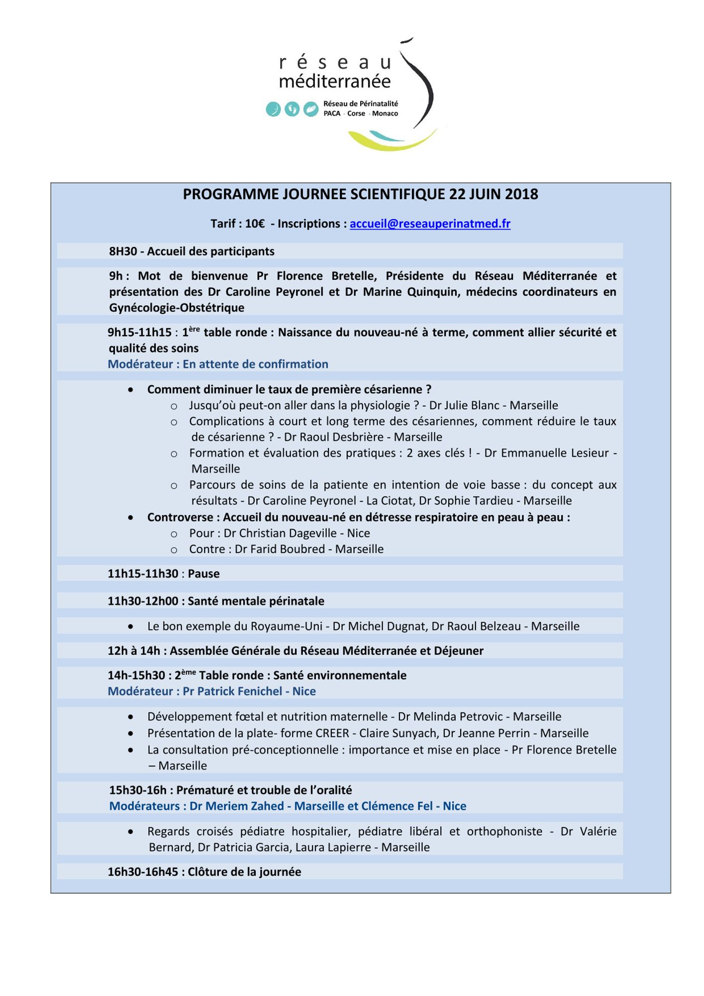 Vous trouverez le programme en pièce jointe ainsi qu’en ligne sur le site internet http://www.reseauperinatmed.fr/