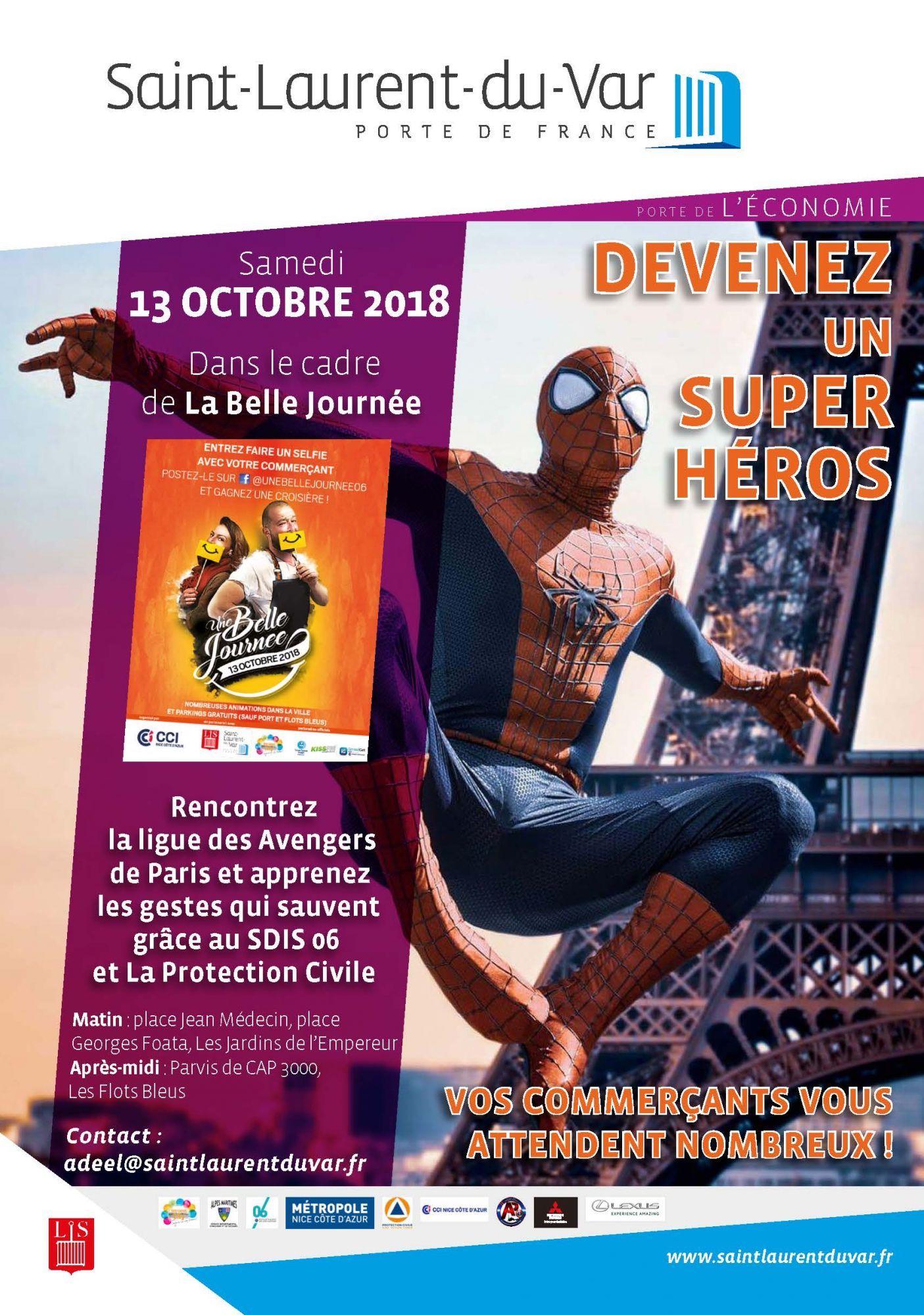 Des Avengers déambuleront pour accompagner les passants jeunes et adultes afin de leur permettre d’être sensibilisés aux 1ers gestes de secours et les accompagneront dans les commerces pour réaliser les selfies qui seront diffusés sur les différents site de la CCINCA, de la ville et sur les facebook des commerçants.