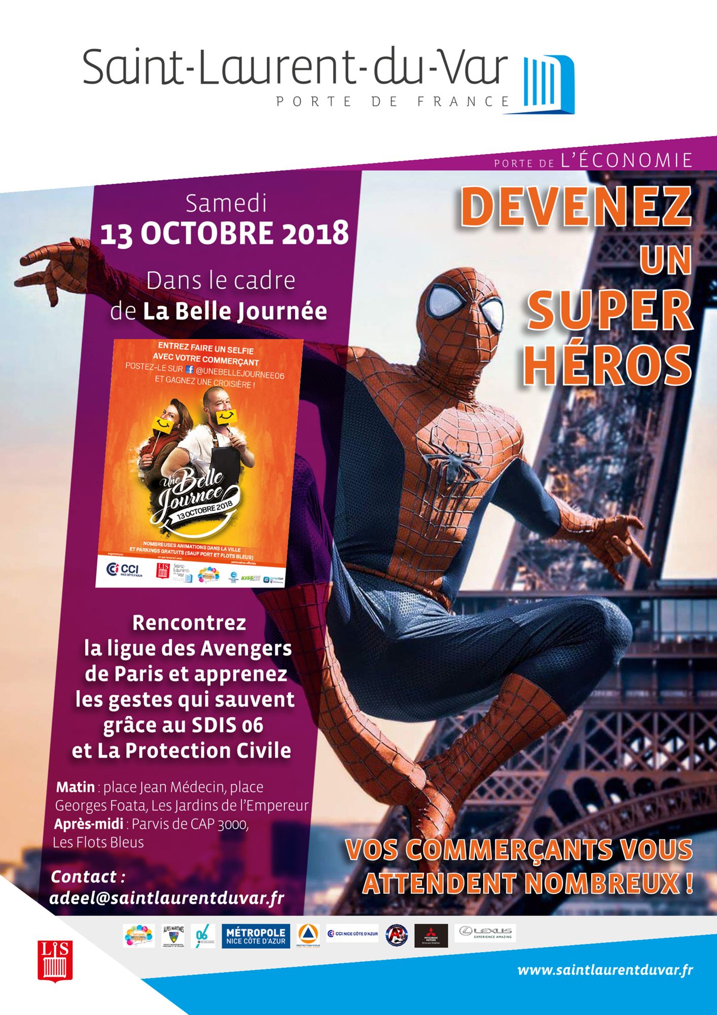 Autour du thème du Super Héros qui sauve des vies en se formant aux 1ers gestes, nous avons voulu y rajouter une touche amusante et visible pour attirer du public avec la présence d’AVANGERS qui tout au long de la journée vont attirer un public jeune et adulte très large et rendre plus festif cette action très sociétale qui correspond à L’ADN de notre ville.