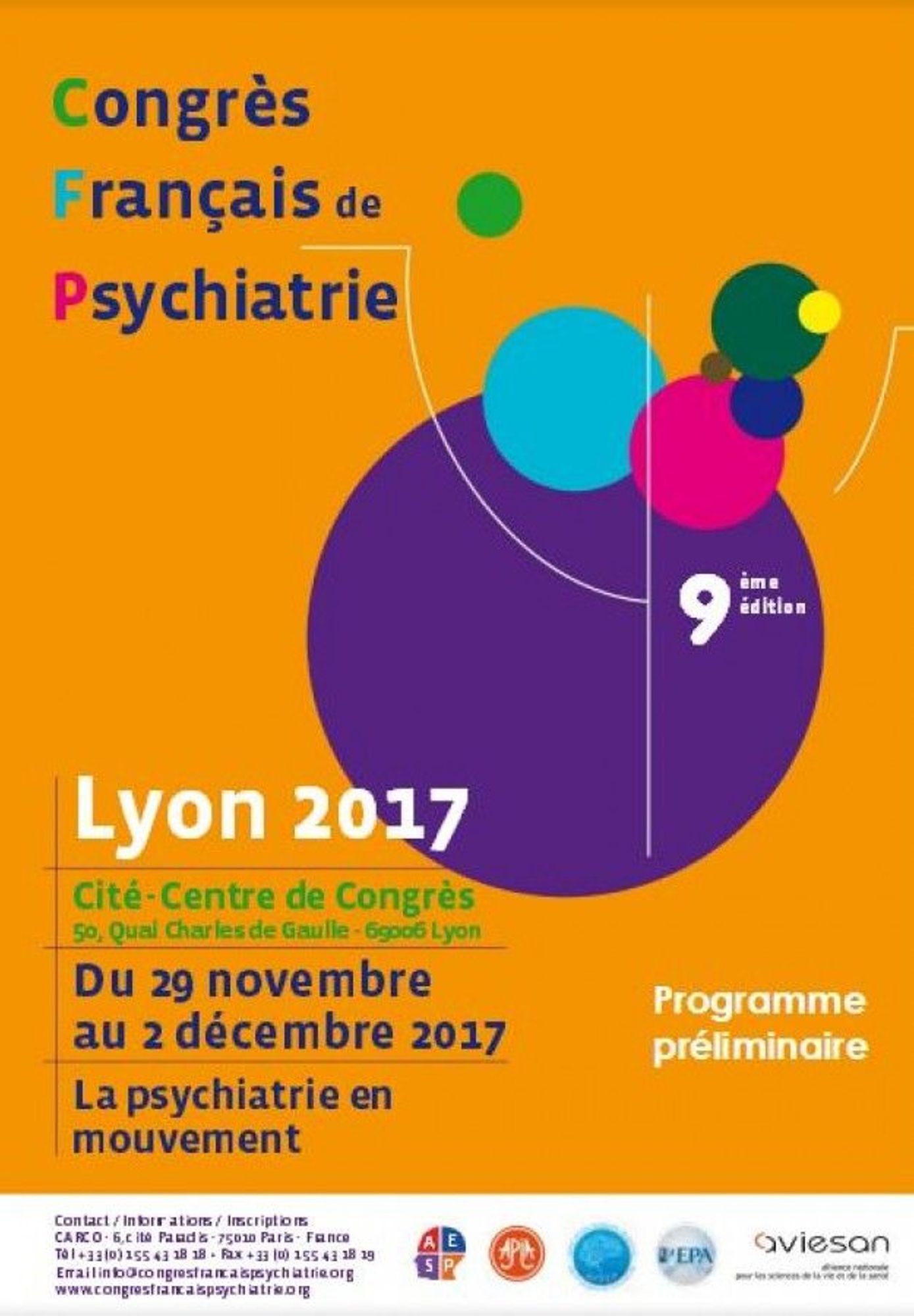 La psychiatrie en mouvement Du 29 novembre au 2 décembre 2017 - Lyon 9e édition du Congrès Français de Psychiatrie. Téléchargez le programme Inscritpion