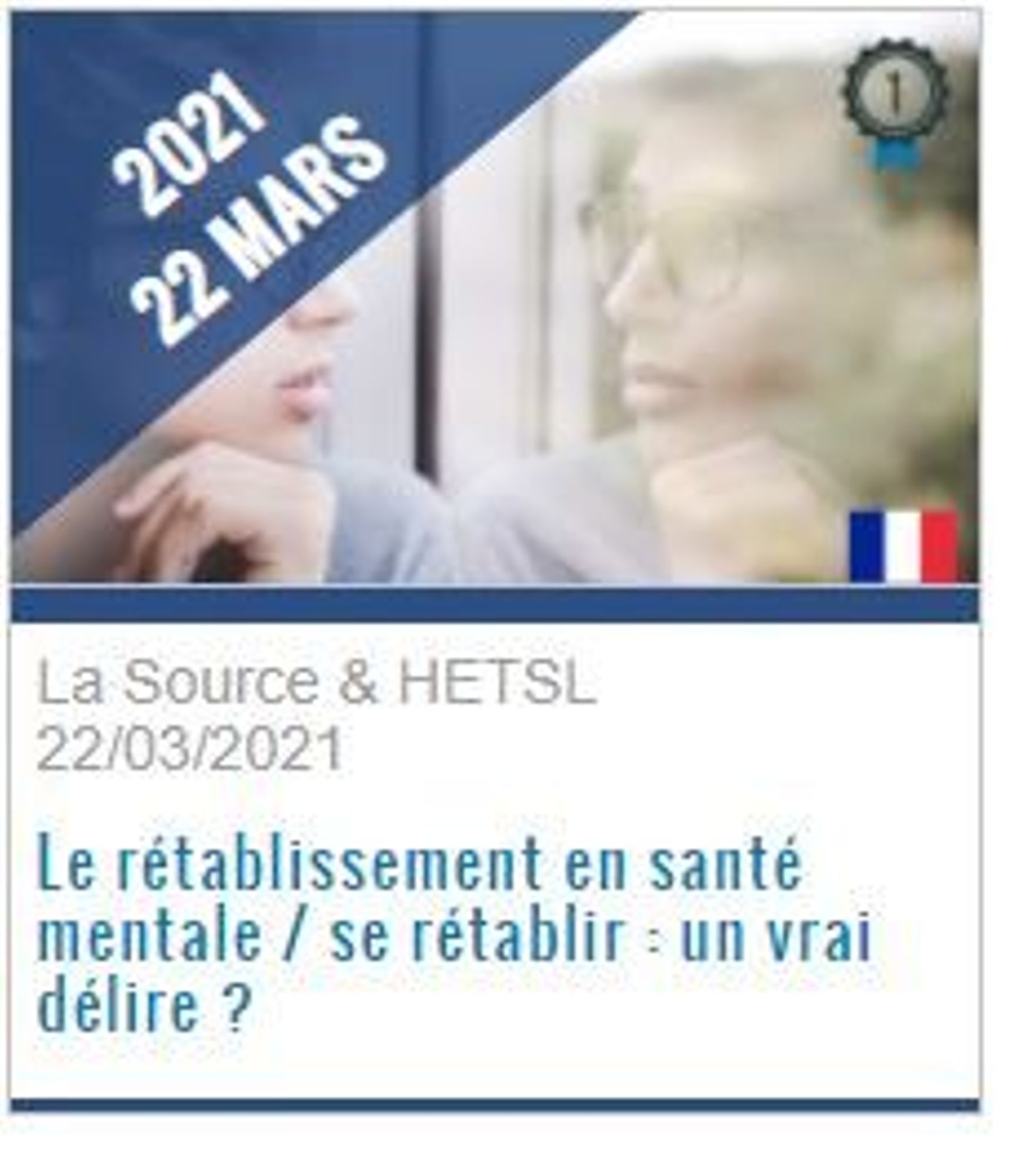 Mooc : Le rétablissement en santé mentale/ se rétablir : un vrai délire