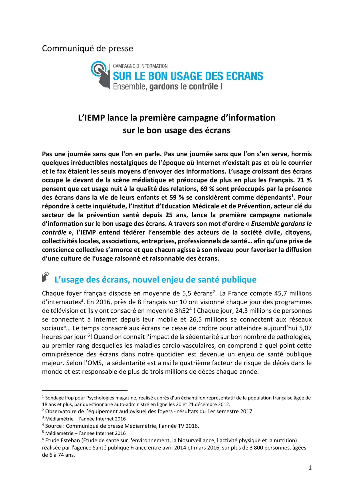 La campagne d’information sur le bon usage des écrans est une initiative de l’ Institut d’Education Médicale et de Prévention (IEMP).