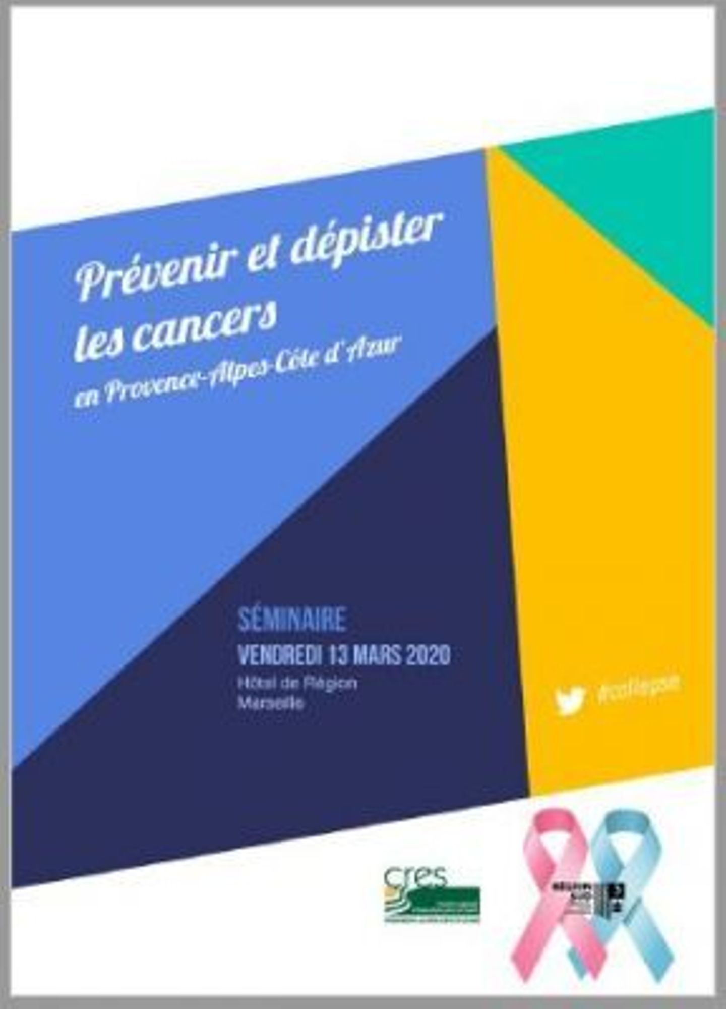 Le CRES et la Région Sud organisent le vendredi 13 mars 2020 à l'Hôtel de Région à Marseille le séminaire "Prévenir et dépister les cancers en Provence-Alpes-Côte d'Azur", de 13h30 à 17h00.