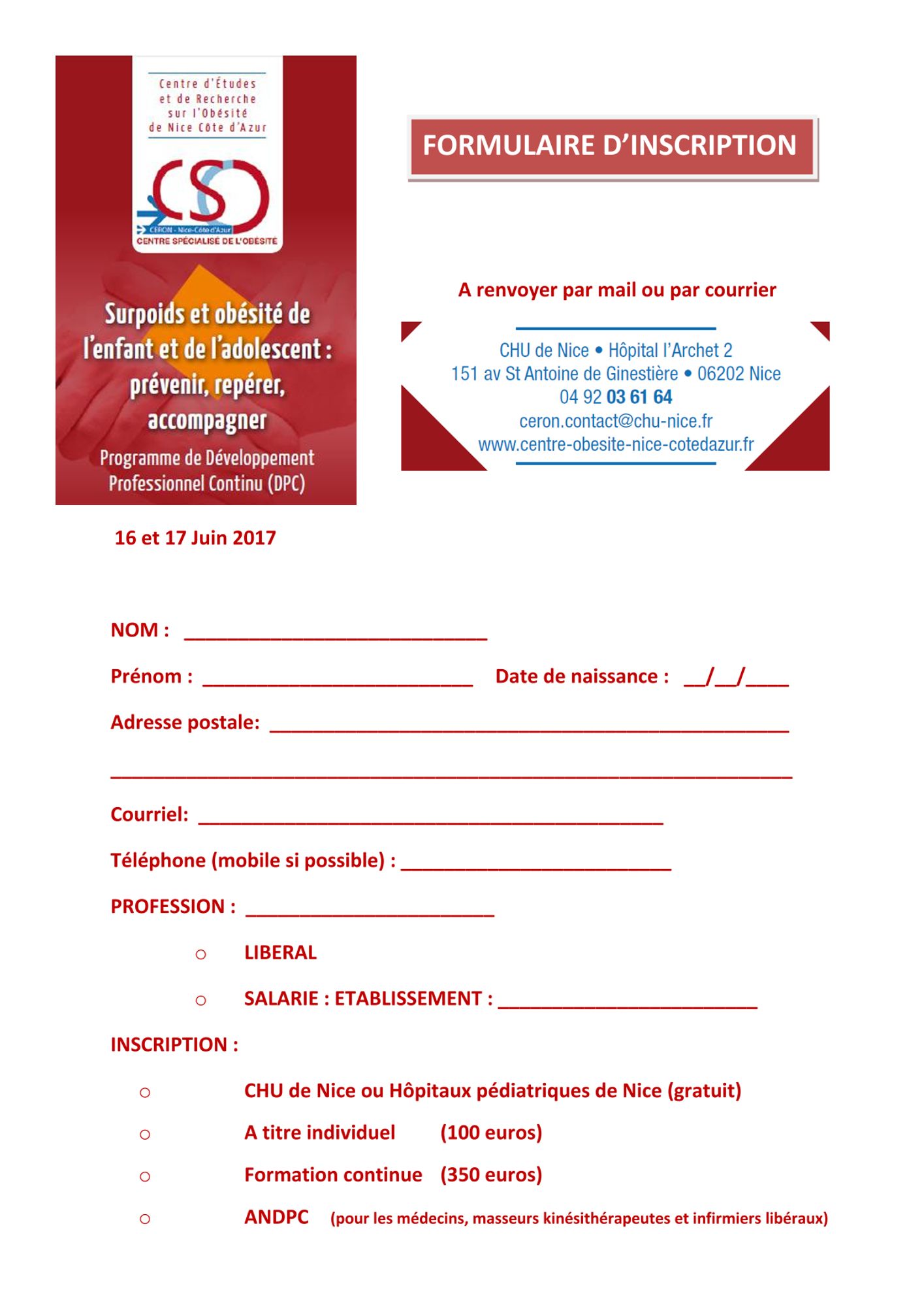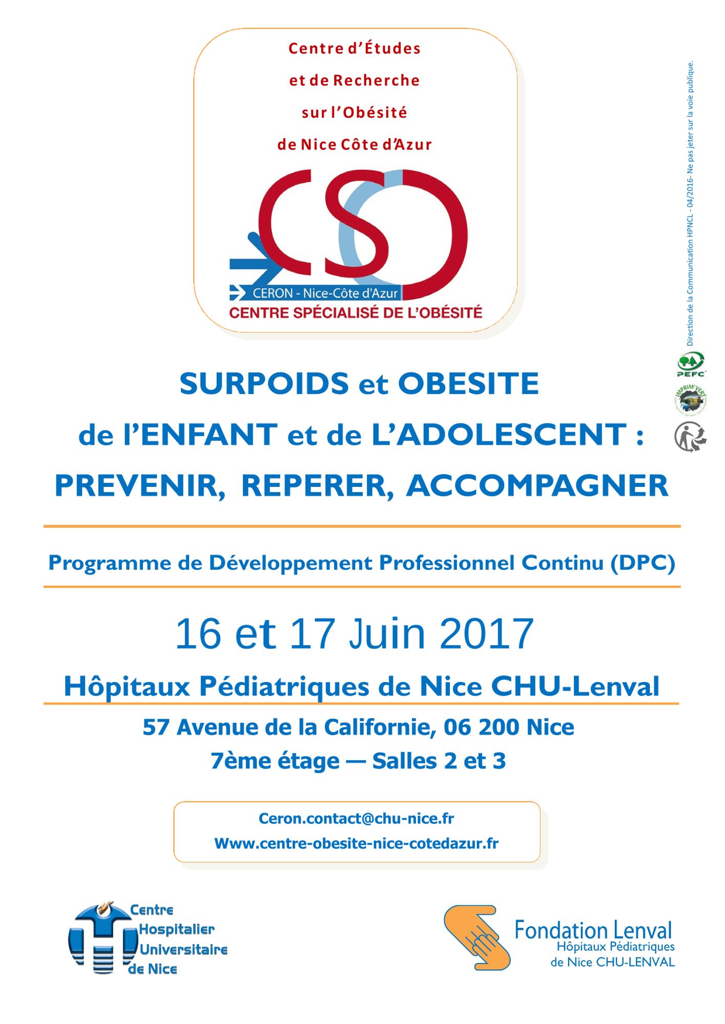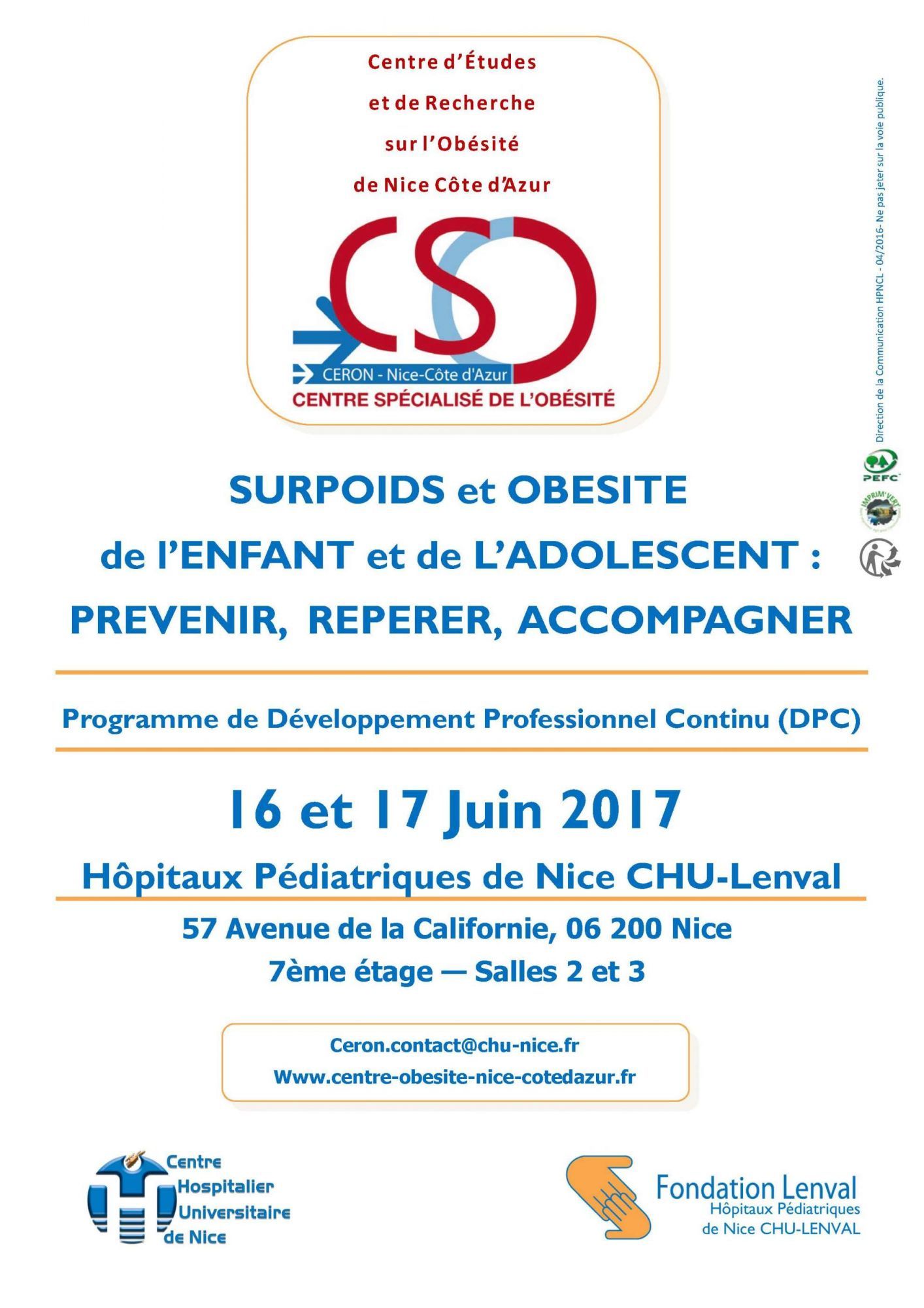 Un programme de formation DPC les vendredi et samedi 16 et 17 Juin 2017 "Surpoids et obésité de l’enfant et de l’adolescent : prévenir, repérer, accompagner"