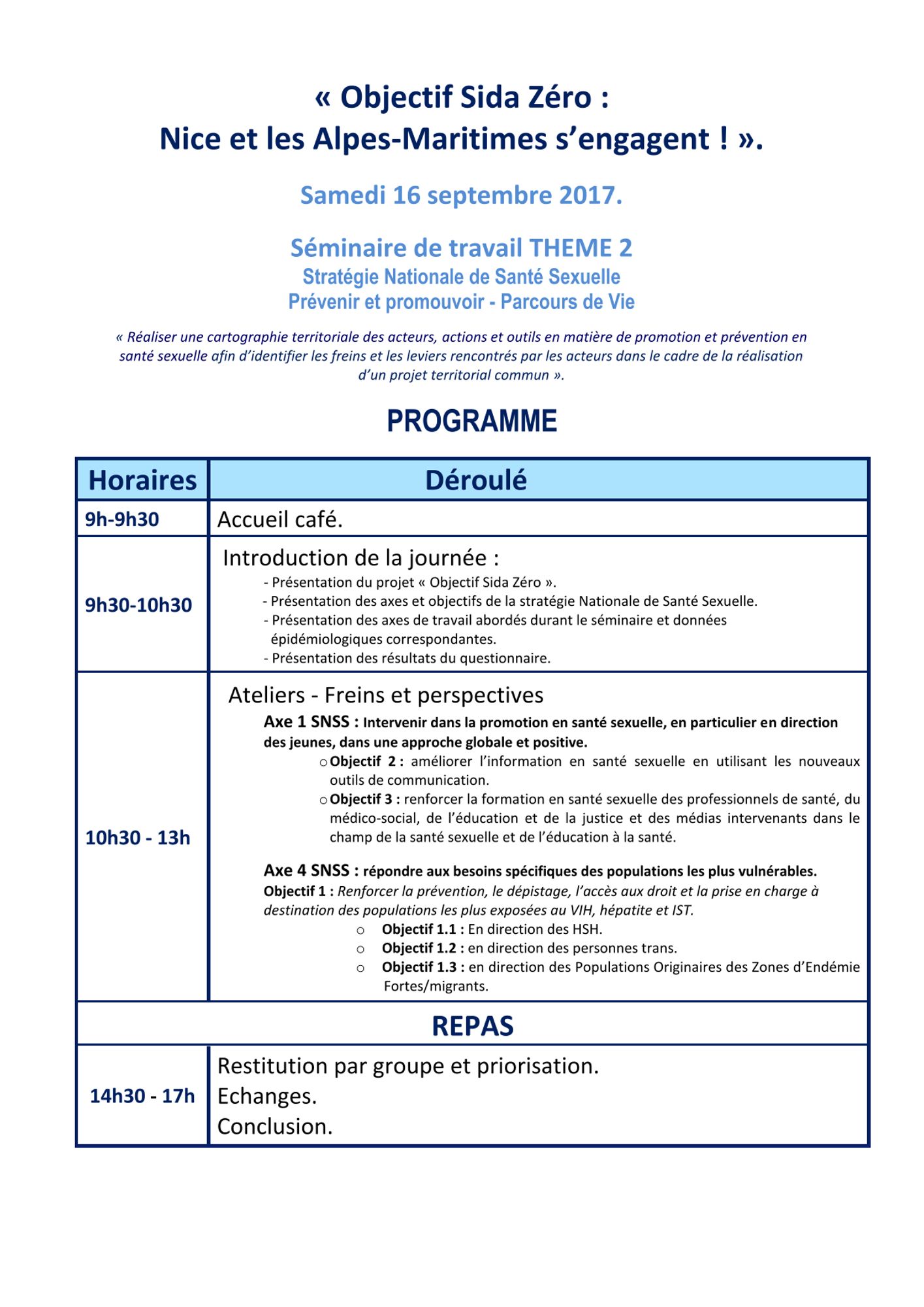 Save the date !!! 2ème Séminaire de travail " Objectif Sida Zéro : Nice et les Alpes-Maritimes s'engagent ! ".