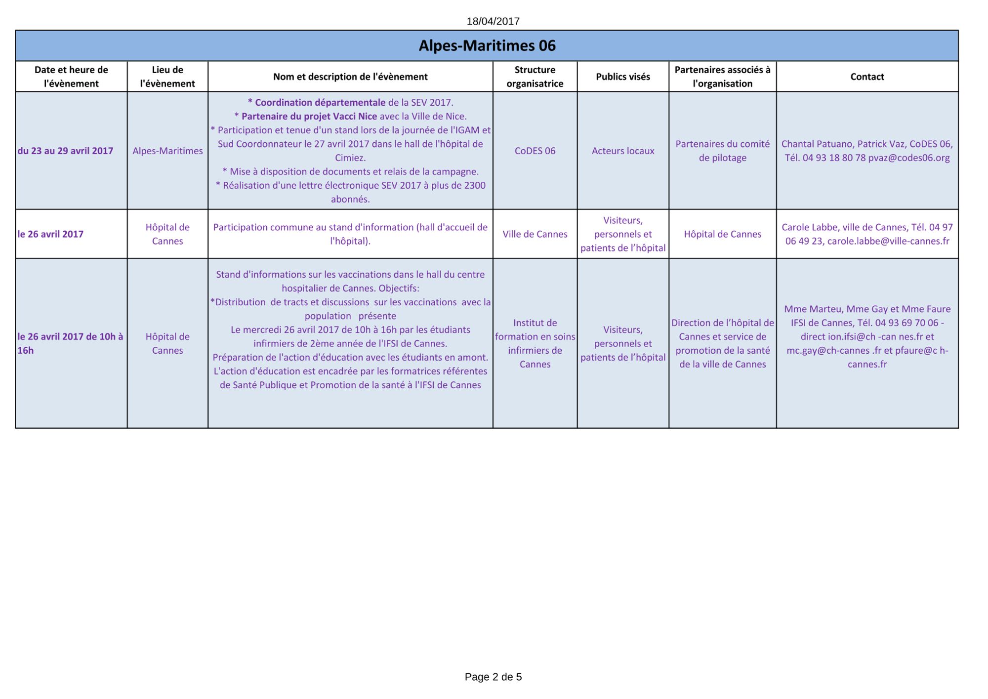 La Semaine européenne de la vaccination (SEV) a été créée en 2005 par l’Organisation mondiale de la santé (OMS). Elle se déroule aujourd’hui dans près de 200 pays dans le monde. La date en est fixée par l’OMS, généralement en avril. C’est un temps fort de communication et d’action en direction du public, des médias et des professionnels de santé, pour faire connaître et expliquer les enjeux de la vaccination. Cette année, la Semaine de la vaccination a lieu du 23 au 29 avril 2017.