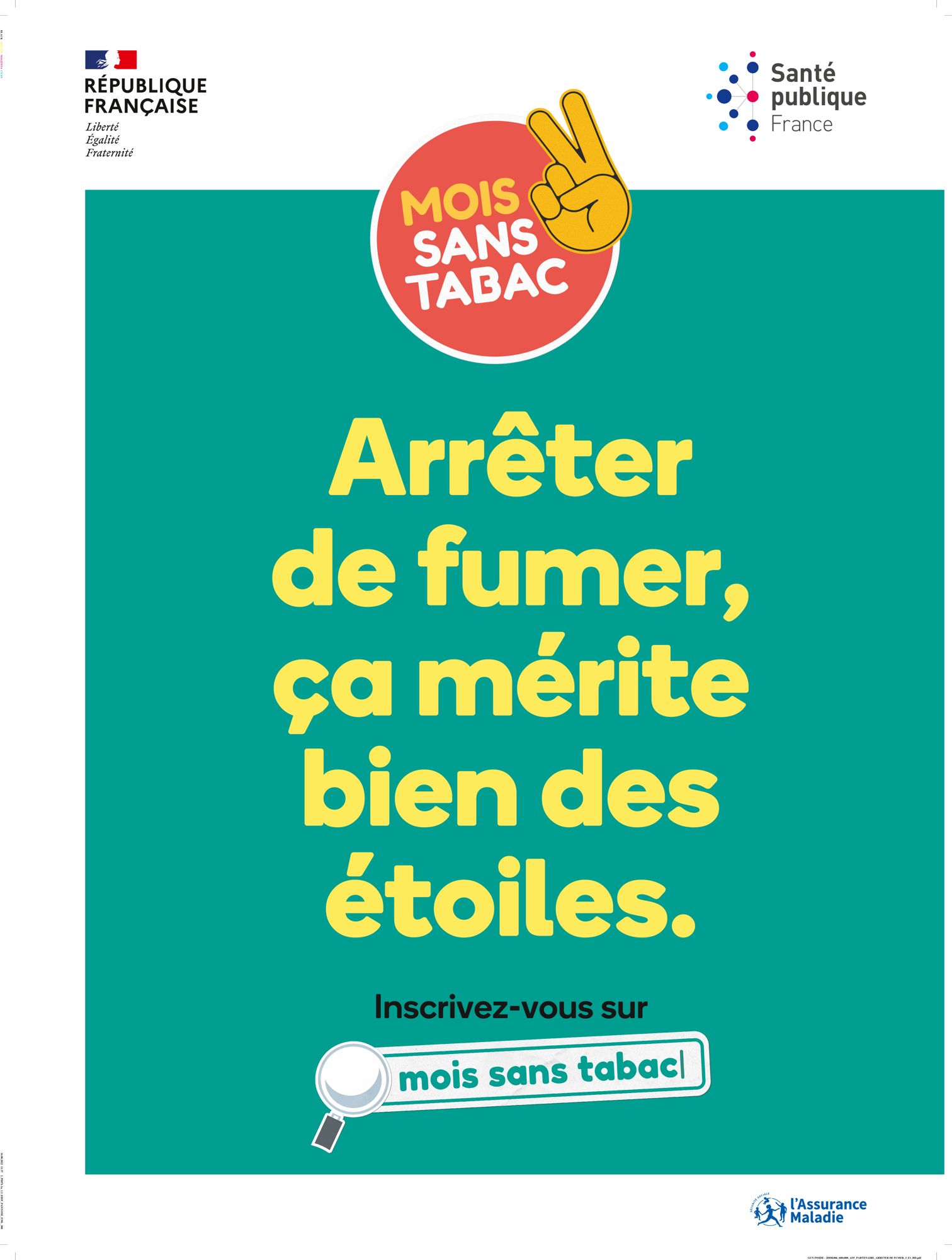 Affiche pour le secteur hotellerie-restauration "Arrêter de fumer, ça mérite bien des étoiles" Affiche -2023 Consultez le document Téléchargez le document (3.8 Mo)