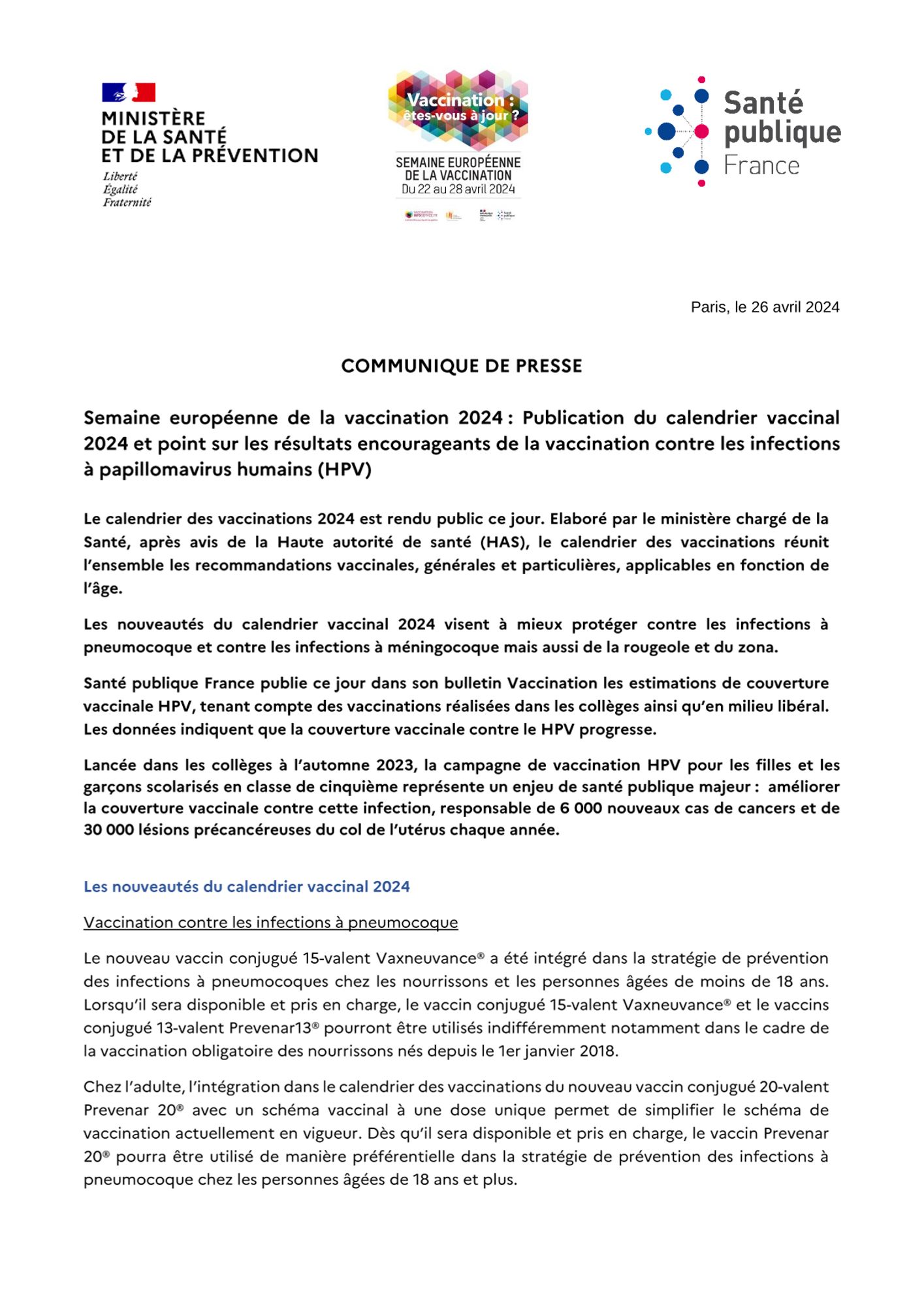 Les nouveautés du calendrier vaccinal 2024