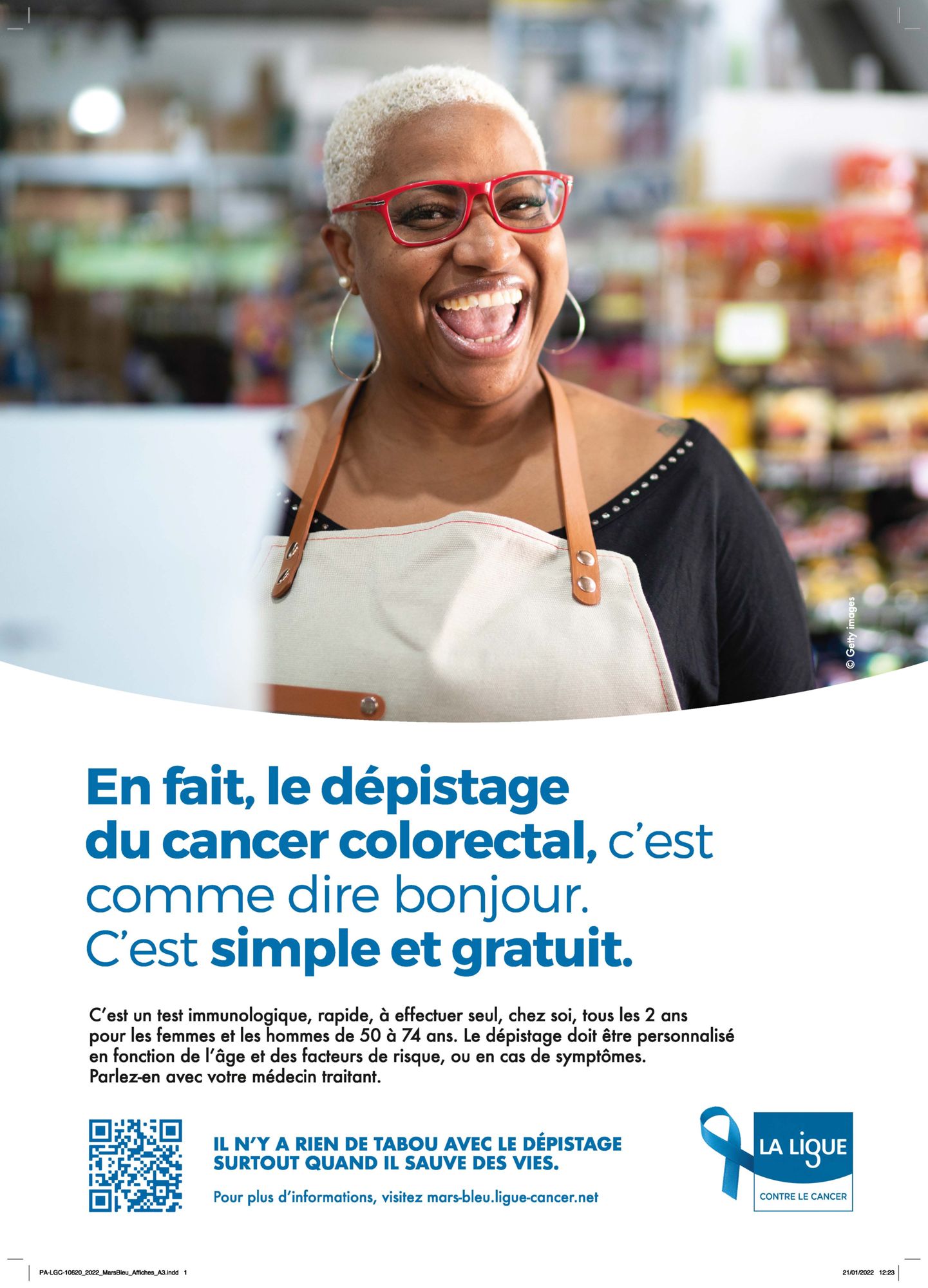 Série de 4 affiches réalisées par la ligue contre le cancer dans le cadre de la campagne Mars bleu 2022.