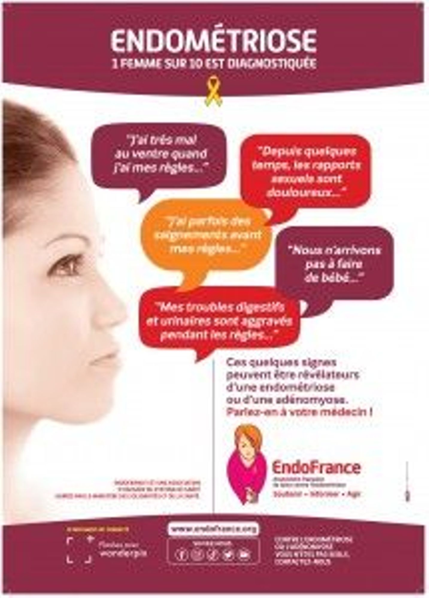 Affichette réalisée par l'association EndoFrance pour informer sur les signes révélateurs d'une endométriose.