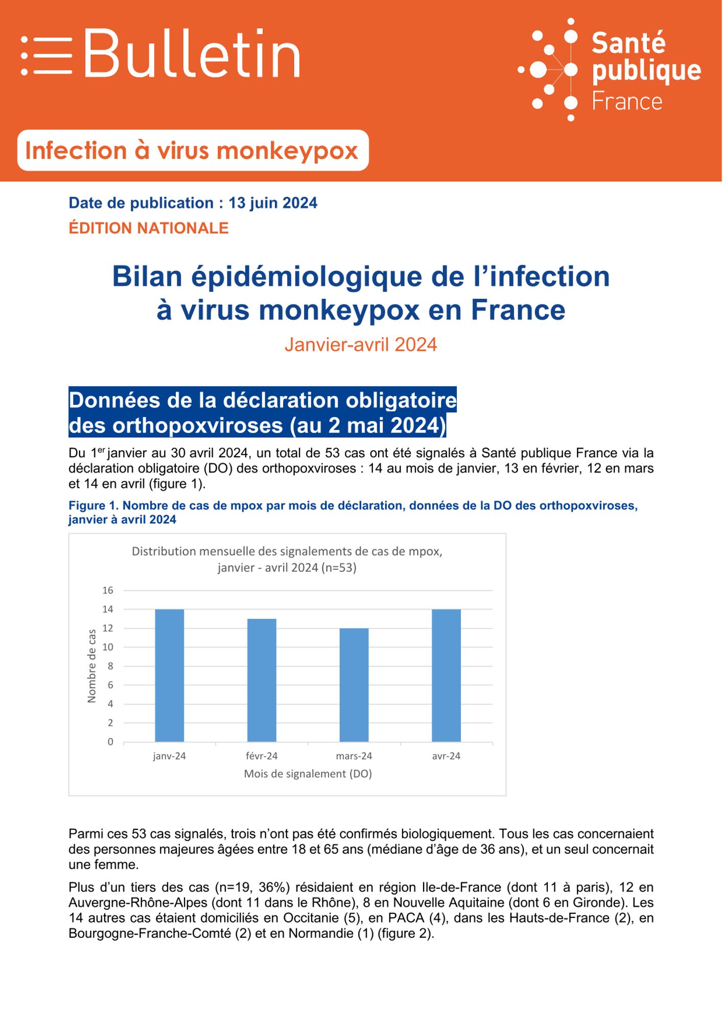 Infection à virus Monkeypox en France. Janvier à avril 2024.
