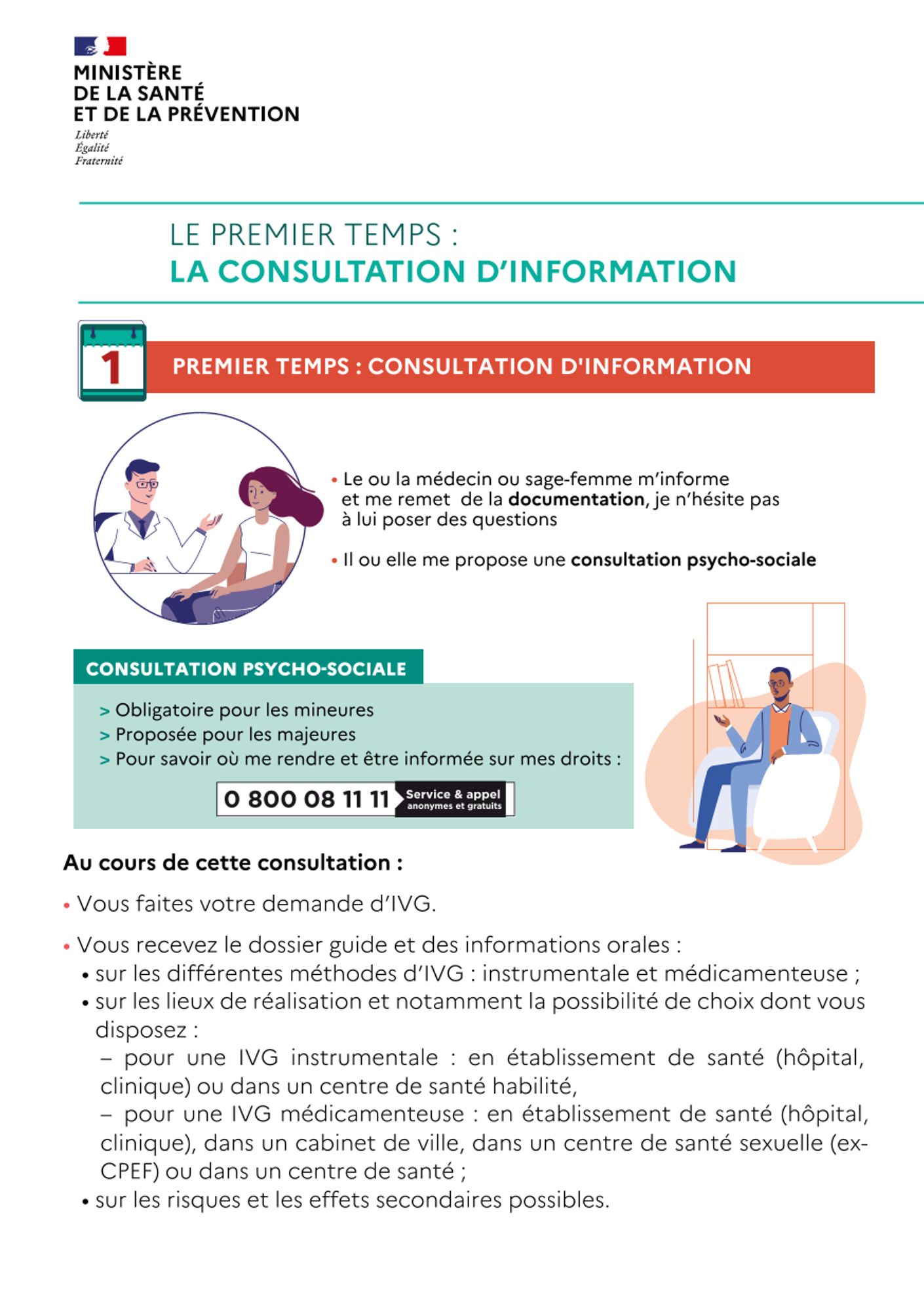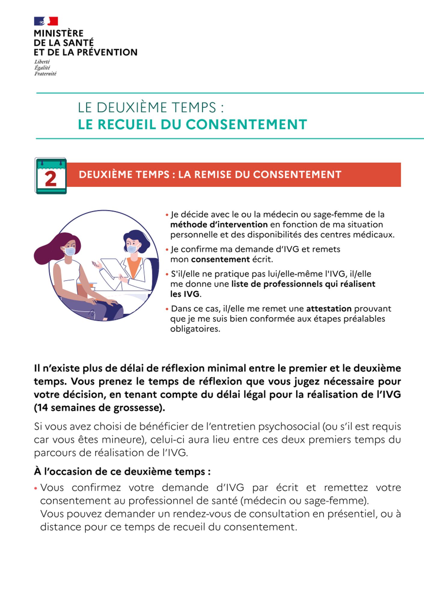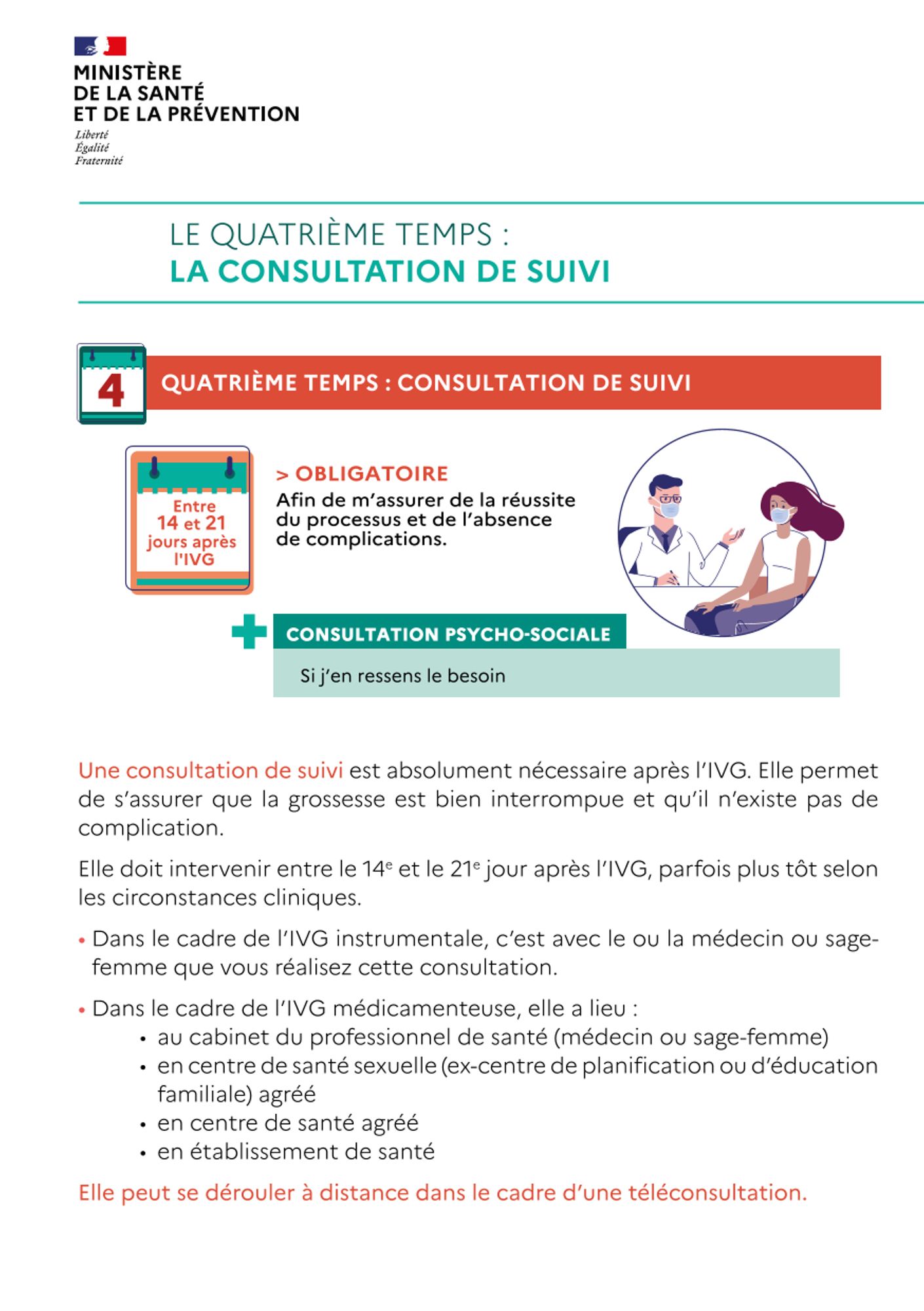 - Les fiches individuelles correspondant aux 4 temps du parcours de l’IVG (consultation d’information, recueil du consentement, réalisation de l’IVG, consultation de suivi),