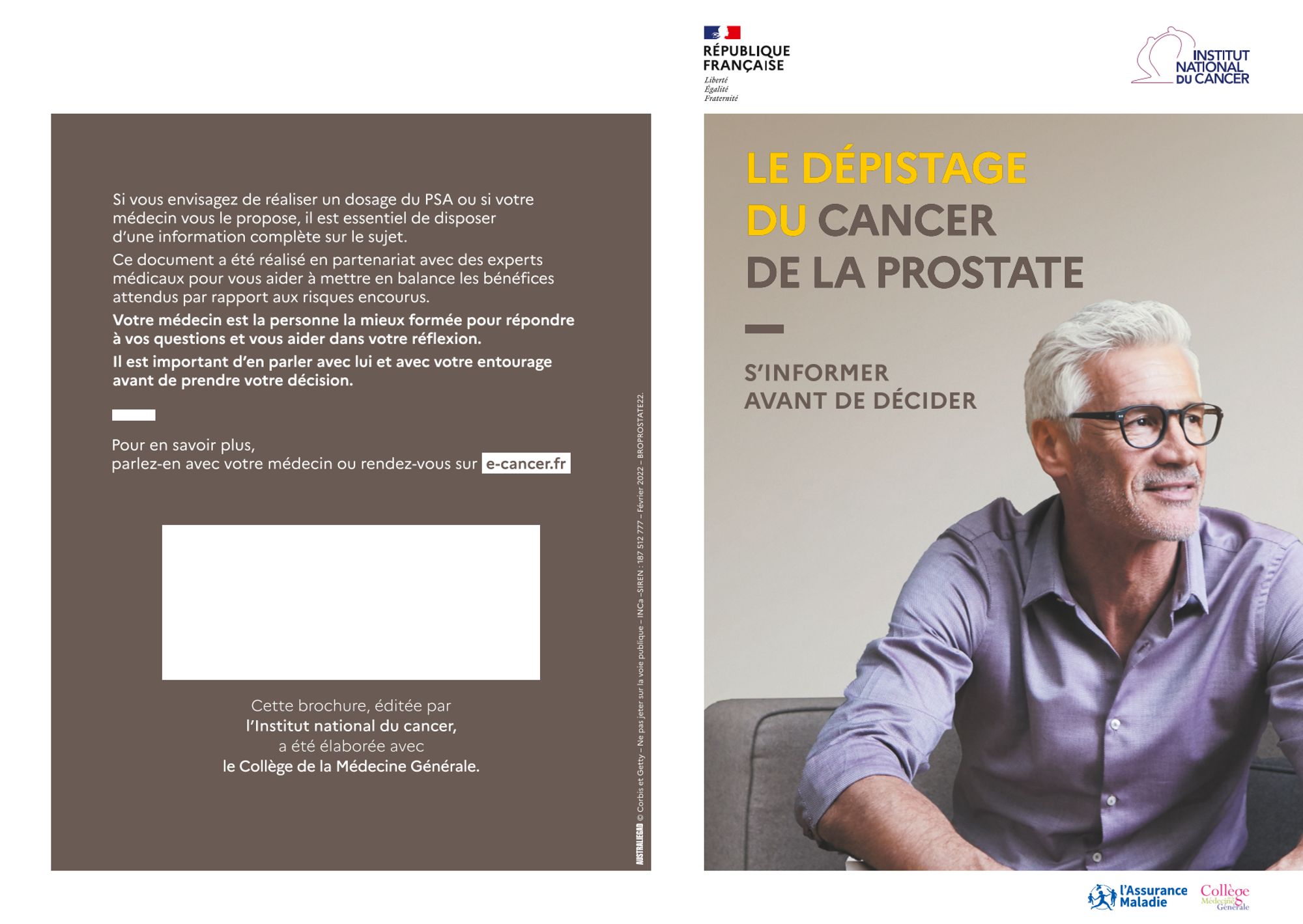 Dépliant grand public sur le dépistage du cancer de la prostate.