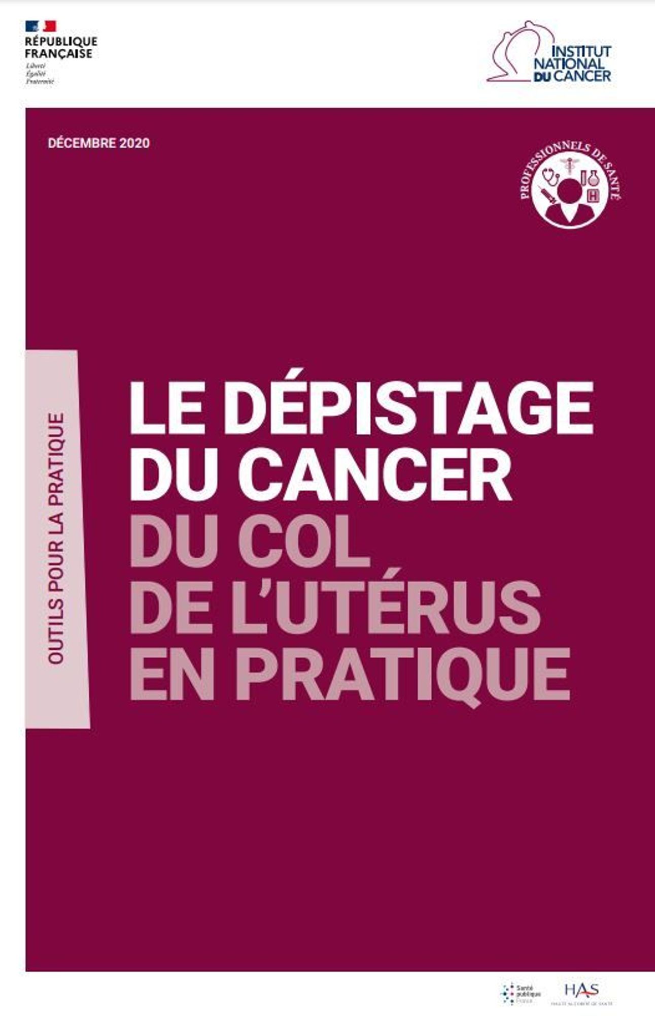 Santé publique France, en partenariat avec l’INCa et la Haute autorité de santé ont élaboré un outil à destination des professionnels de santé qui synthétise les modalités pratiques du dépistage et les conduites à tenir en fonction de l’âge de la femme qui ont évolué avec les dernières recommandations de la Haute autorité de santé sur le dépistage du cancer du col de l’utérus.