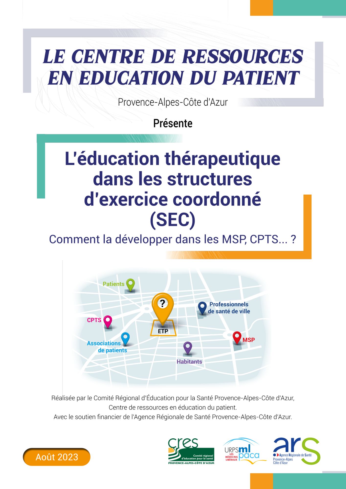 Le CRES, en partenariat avec l'ARS PACA et l'URPS médecins libéraux, et dans le cadre d'un groupe de travail pluriprofessionnel, a conçu en 2023 un guide méthodologique pour favoriser le développement de l'éducation thérapeutique du patient (ETP) dans les structures d'exercice coordonné.