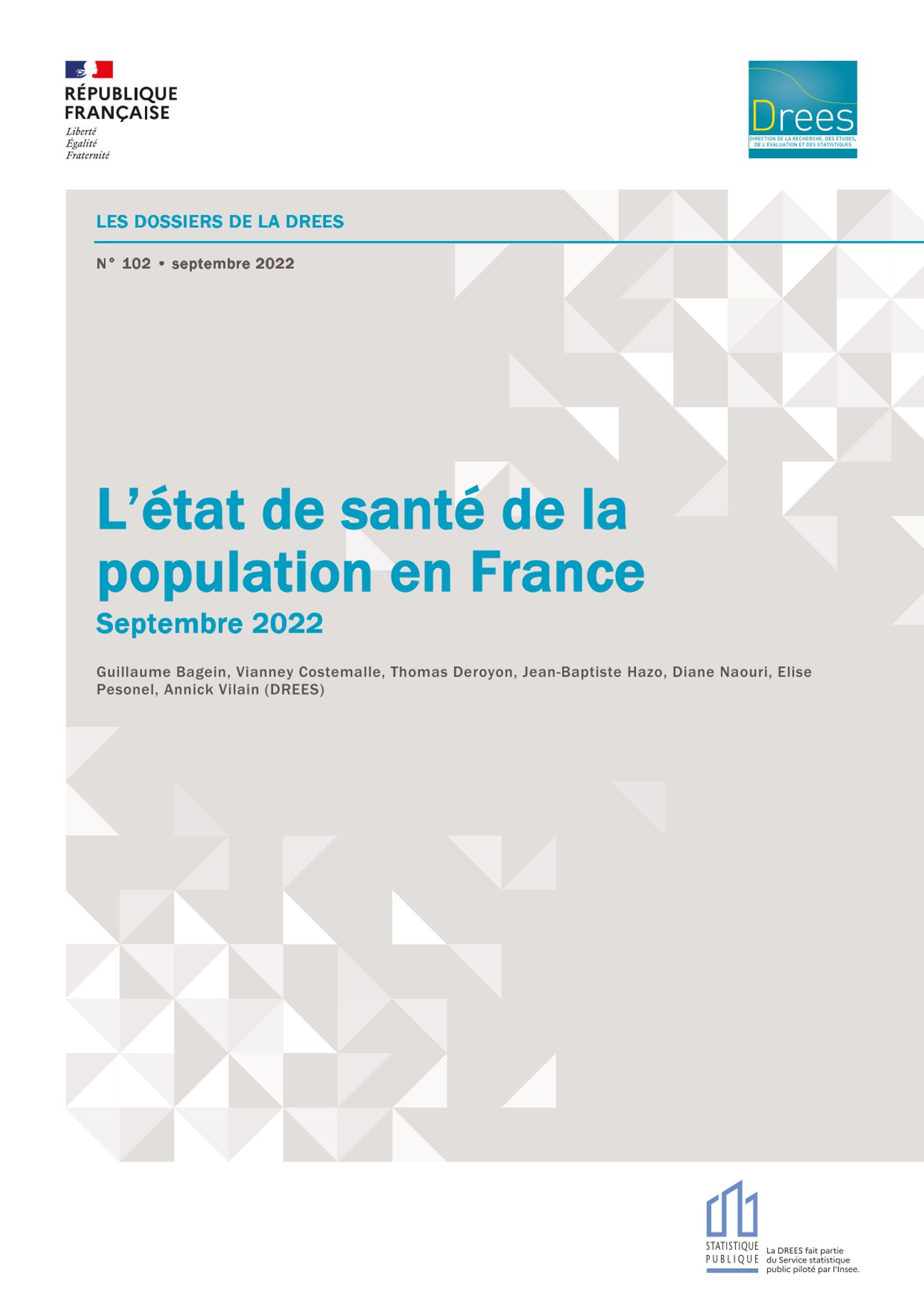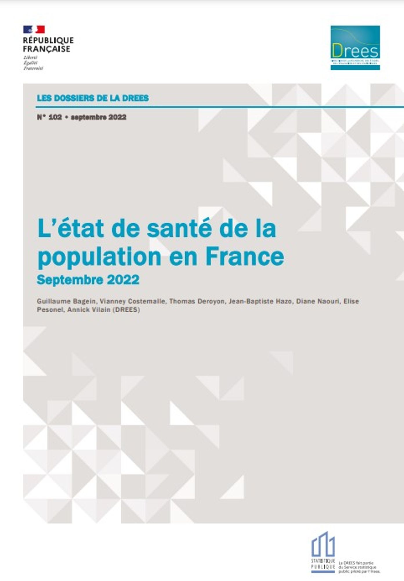 La Direction de la recherche, des études, de l’évaluation et des statistiques (DREES) publie un Dossier de la DREES sur l’Etat de santé de la population en France. Ce dossier en propose une synthèse et analyse les déterminants de de l’état de santé en mobilisant les données les plus récentes, avec un focus sur les inégalités sociales et territoriales de santé.