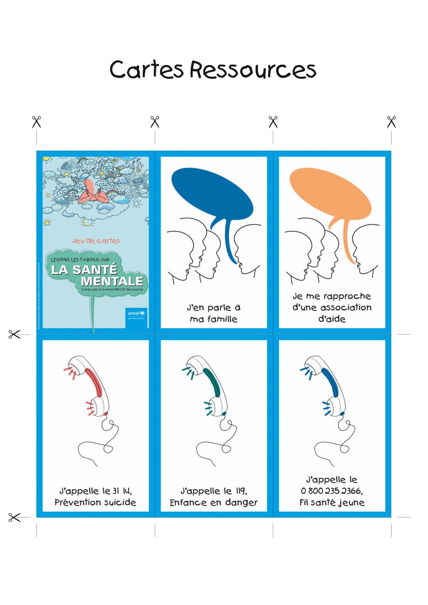 Enfin, ce kit donne quelques clés pour apprendre à prendre soin de sa santé mentale en repérant des signes de mal-être et en ayant en tête des solutions possibles. Les activités proposées permettent d’introduire le sujet de la santé mentale en une à deux heures. Les contraintes de temps ne permettent pas d’aborder la santé mentale dans sa globalité avec toutes ses nuances et spécificités. Des ressources supplémentaires sont proposées à la fin du kit.