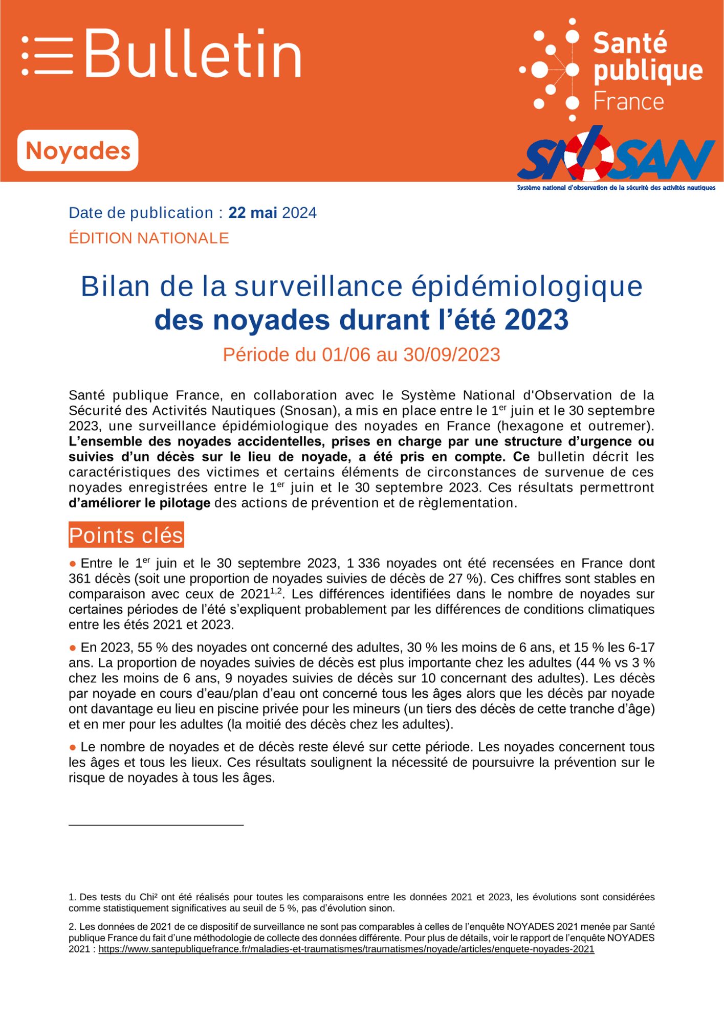 Noyades en France. Bilan de surveillance de l'été 2023.
