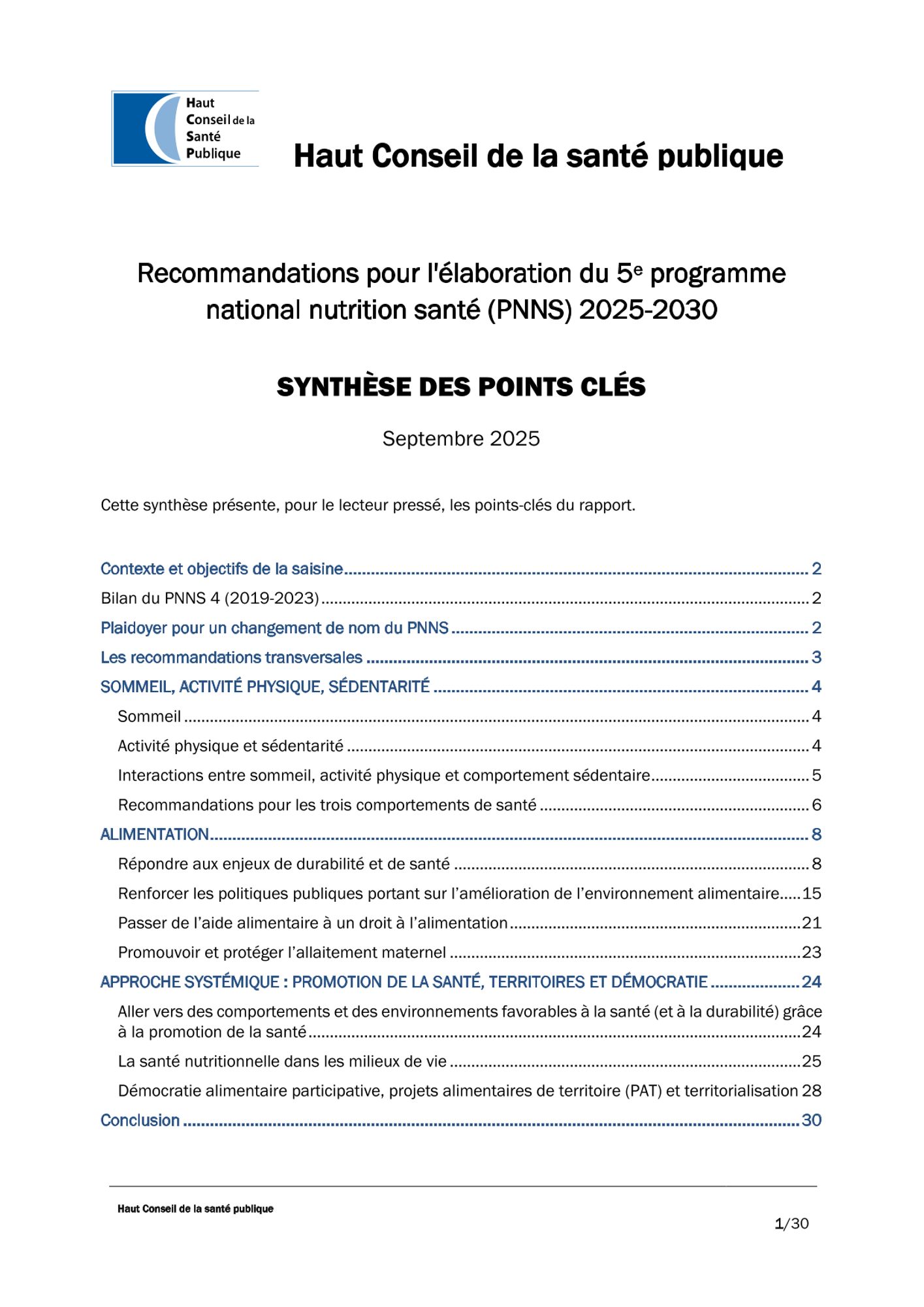Le HCSP recommande une refonte du Programme National Nutrition Santé (PNNS), en élargissant son périmètre pour intégrer la durabilité environnementale, le sommeil, l’activité physique et la lutte contre la sédentarité.