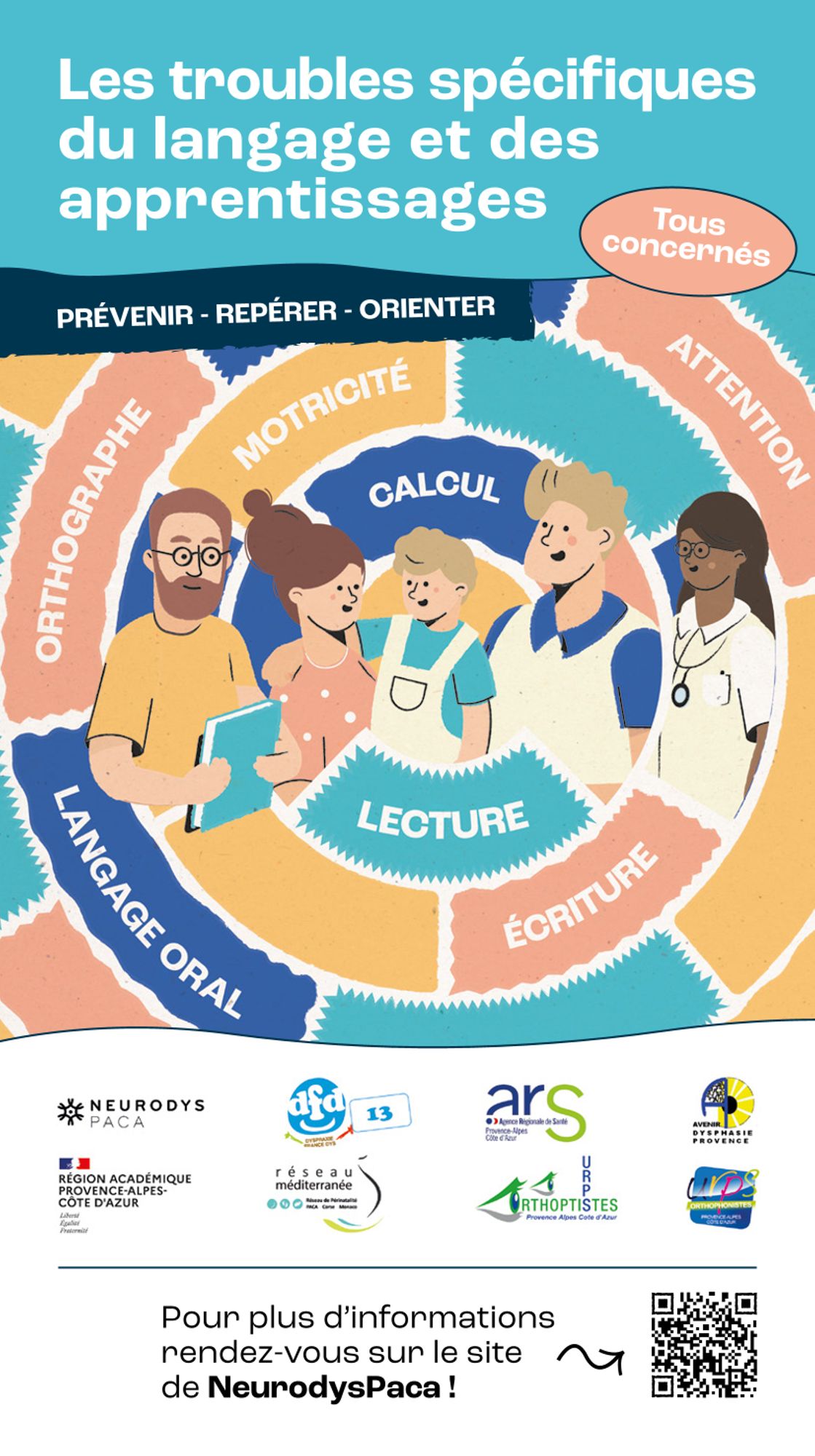 L'Agence régionale de santé Provence-Alpes-Côte d'Azur, en lien avec le dispositif régional Résodys, les Académies d'Aix-Marseille et de Nice, les représentants des professionnels de santé et de l'éducation et les associations de familles, a réalisé un guide d'aide au repérage, à la prévention et à la prise en charge des troubles spécifiques du langage et des apprentissages (TSLA).