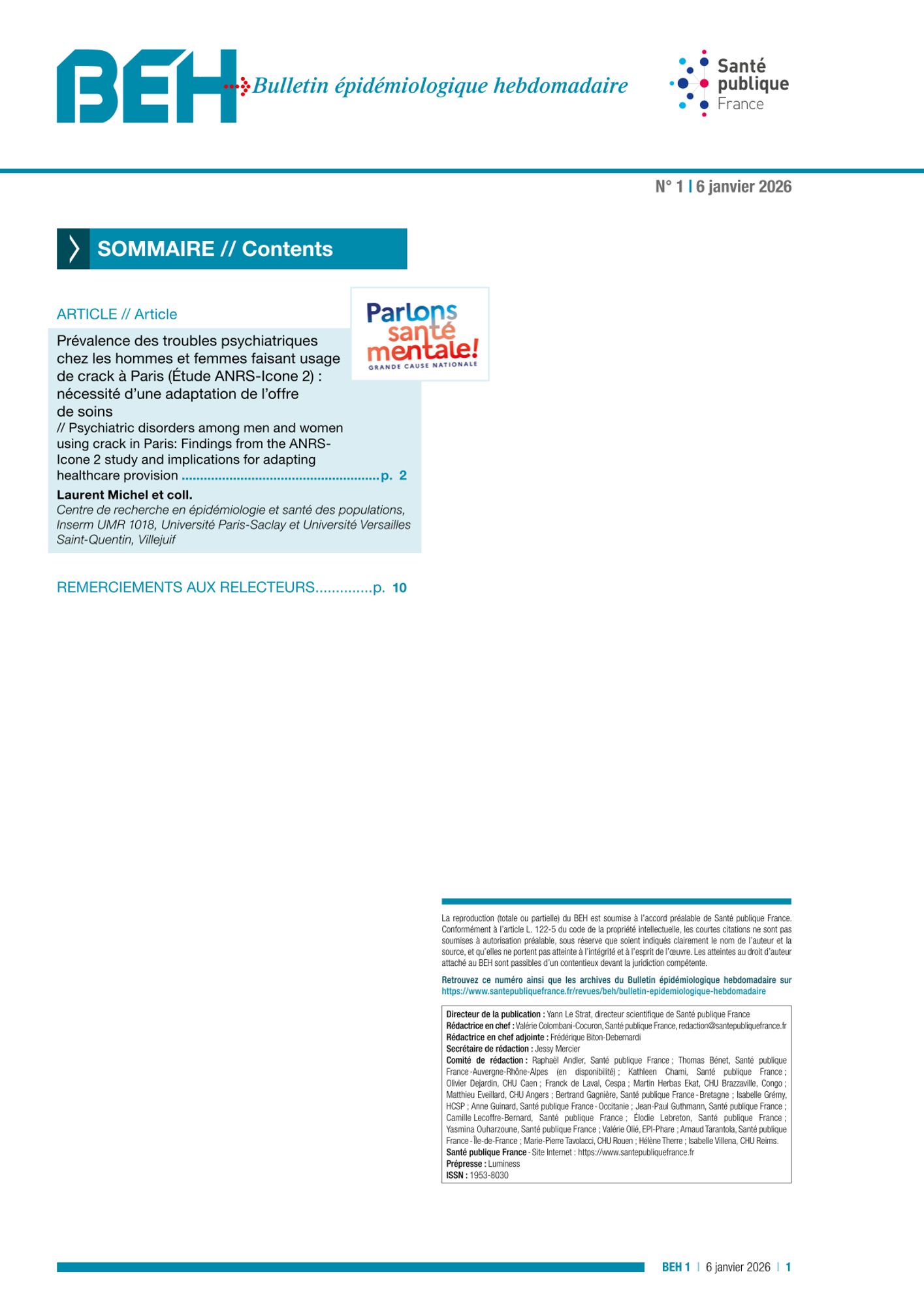 L’usage de crack est associé à une dégradation importante de la situation sociale et de la santé mentale des usagers. L’objectif de ce travail est d’estimer la prévalence des troubles psychiatriques de consommateurs de crack à Paris. [Résumé éditeur]