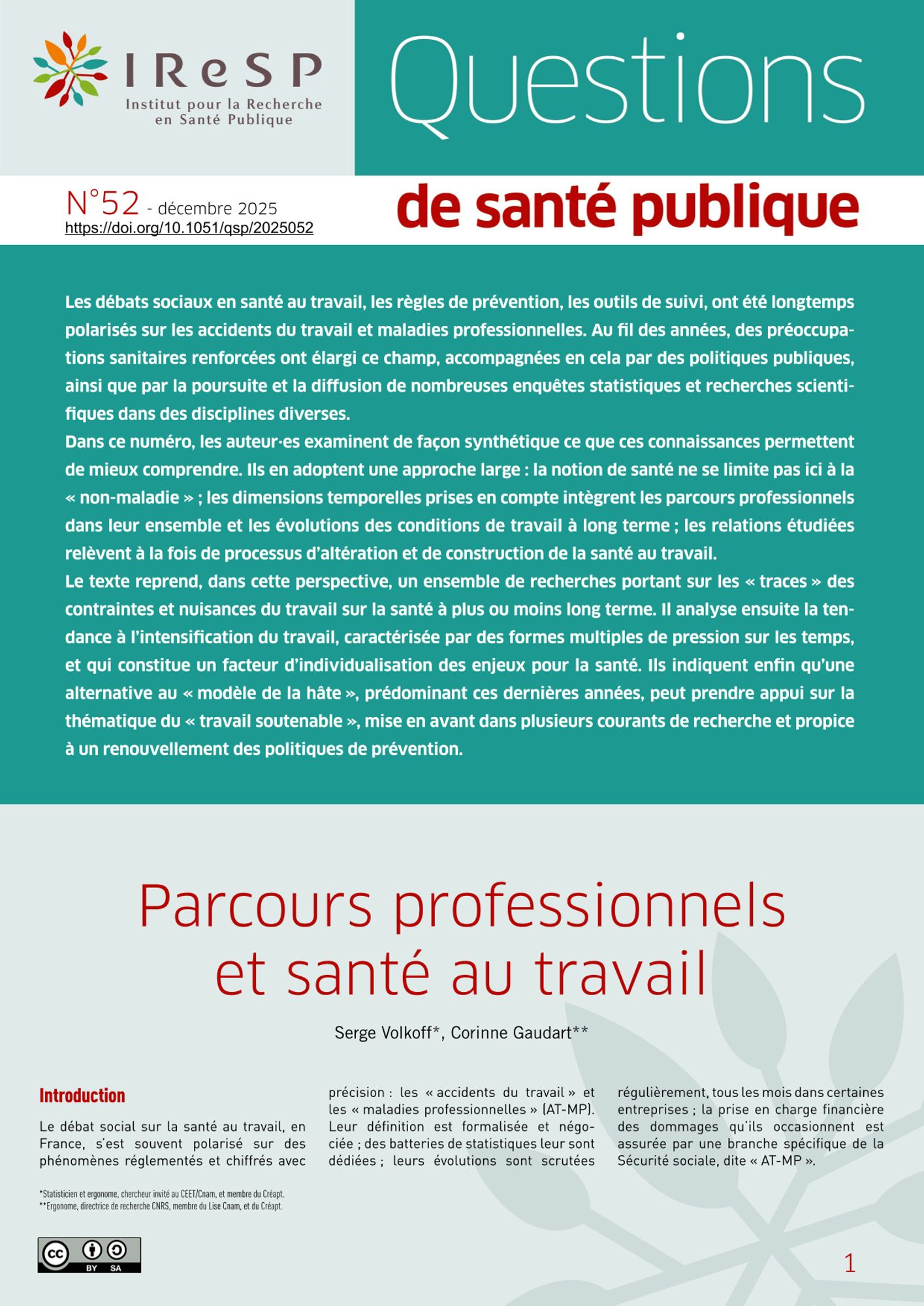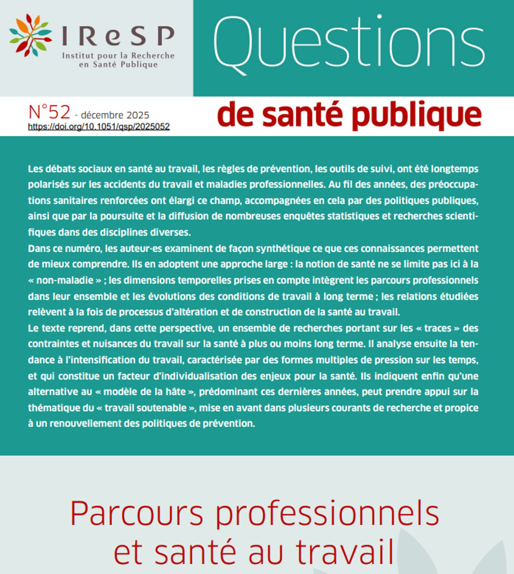 Parcours professionnels et santé au travail - IReSP - n°52 Décembre 2025