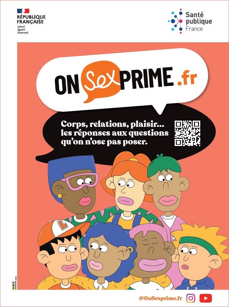 Affiche du dispositif OnSEXprime comportant un QRcode renvoyant sur le site onsexprime.fr.