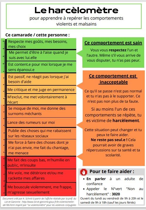 - Le harcèlomètre, pour apprendre à repérer les comportements violents et malsains
