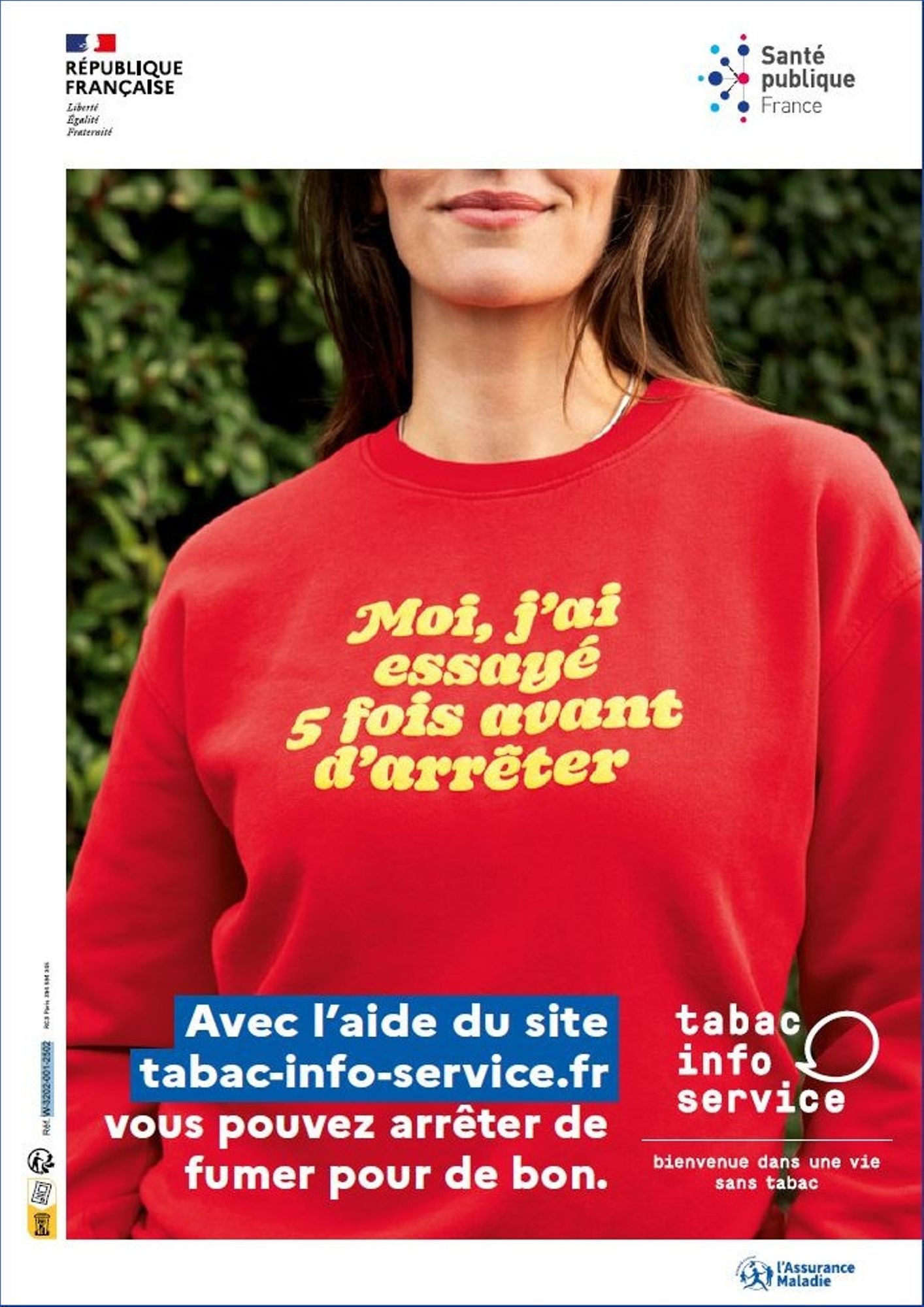 Cette affiche vise à normaliser les tentatives d'arrêt du tabac comme une étape du sevrage. En effet, chaque tentative est un pas vers l'arrêt définitif. Elle promeut également le site Tabac info service pour être aidé et arrêter de fumer pour de bon.