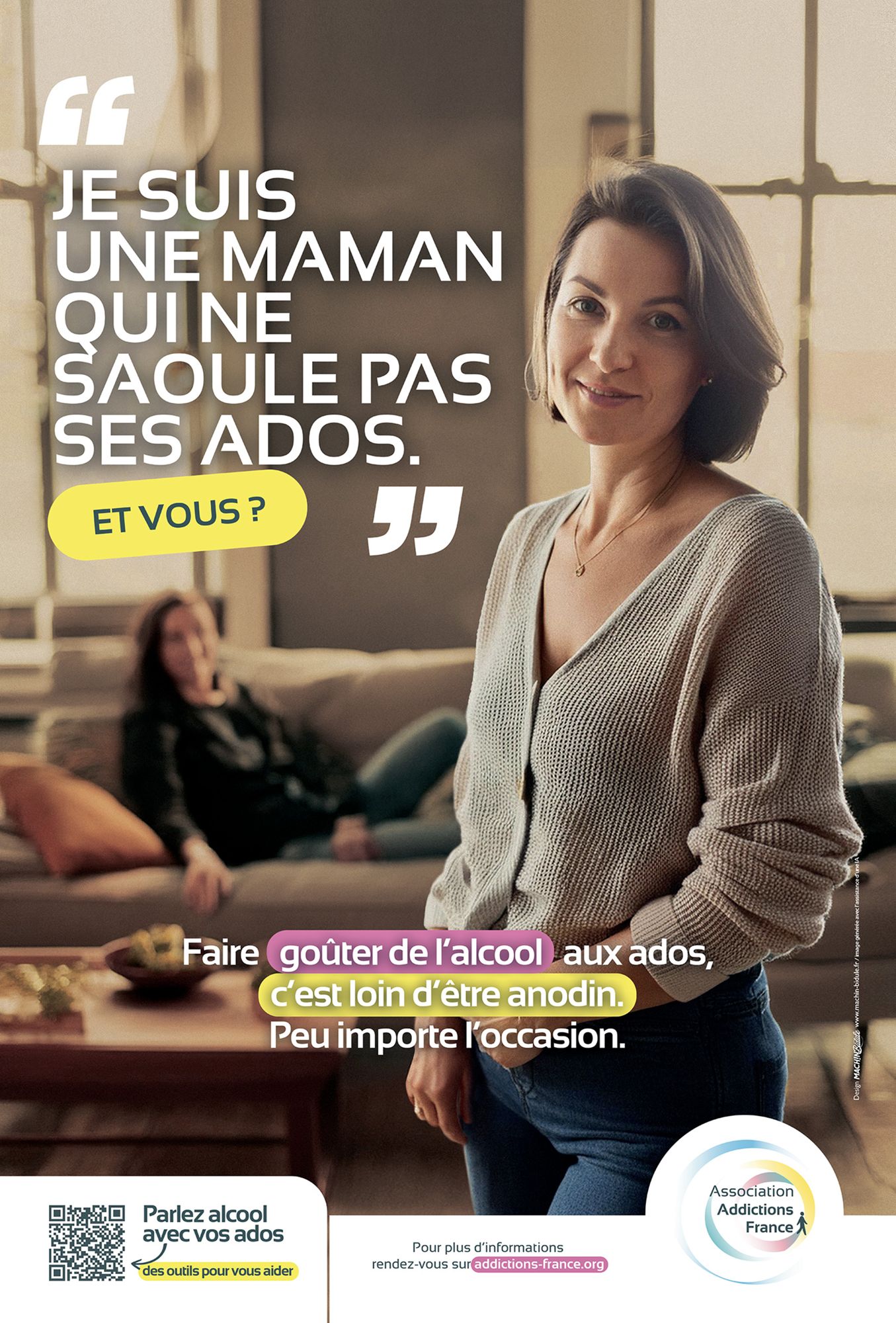 Cette affiche invite les parents et l'entourage familial à s’interroger sur la consommation précoce d'alcool chez les adolescents.