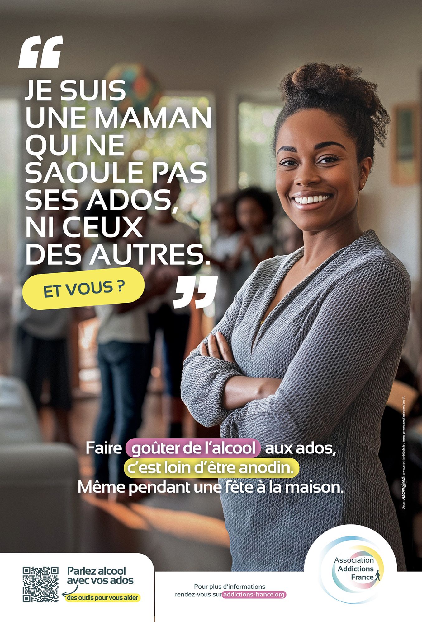Cette affiche invite les parents et l'entourage familial à s’interroger sur la consommation précoce d'alcool chez les adolescents.