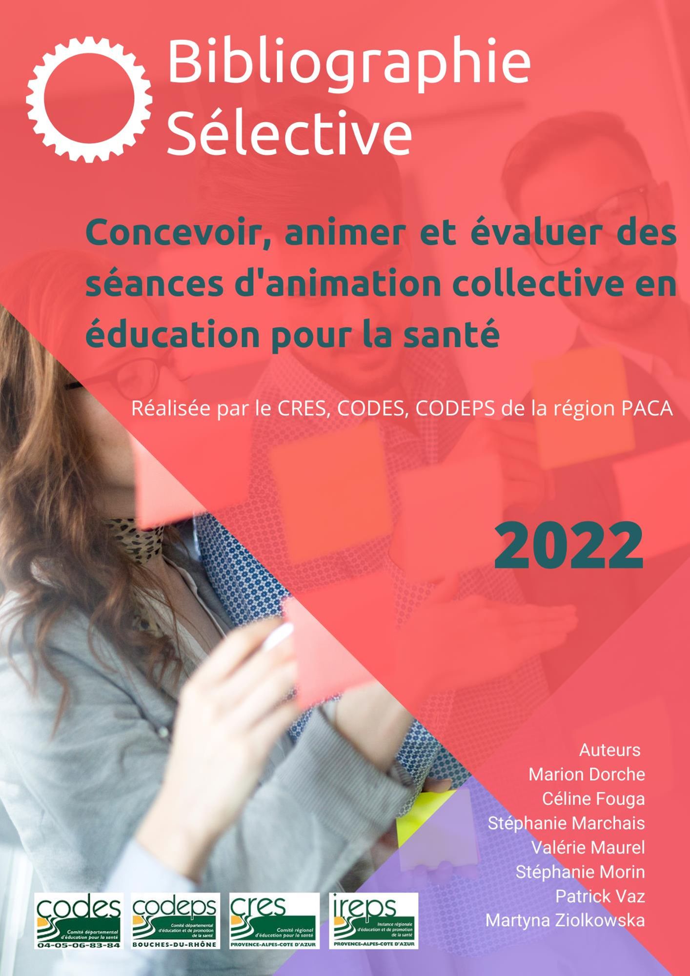 Cette bibliographie , a été élaborée par les documentalistes et chargé(es) de documentation du Comité régional d’éducation pour la santé (CRES) et les Comité d’éducation pour la santé (CoDES et CoDEPS) de la région Provence-Alpes-Côte d’Azur (Alpes de Haute-Provence, Hautes Alpes, Alpes-Maritimes, Bouches-du-Rhône, Var et Vaucluse) dans le cadre de la formation « Concevoir, animer et évaluer des séances collectives en éducation pour la santé » financée par l’Agence régionale de santé dans le cadre du Dispositif régional de soutien aux politiques et aux interventions en prévention et promotion de la santé.