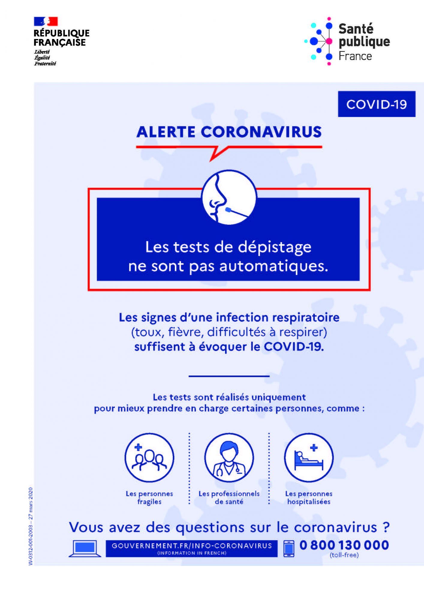 - 2 nouvelles affiches relatives au Covid-19 : la première explique dans quels cas les tests sont nécessaires, la deuxième montre comment bien se laver les mains