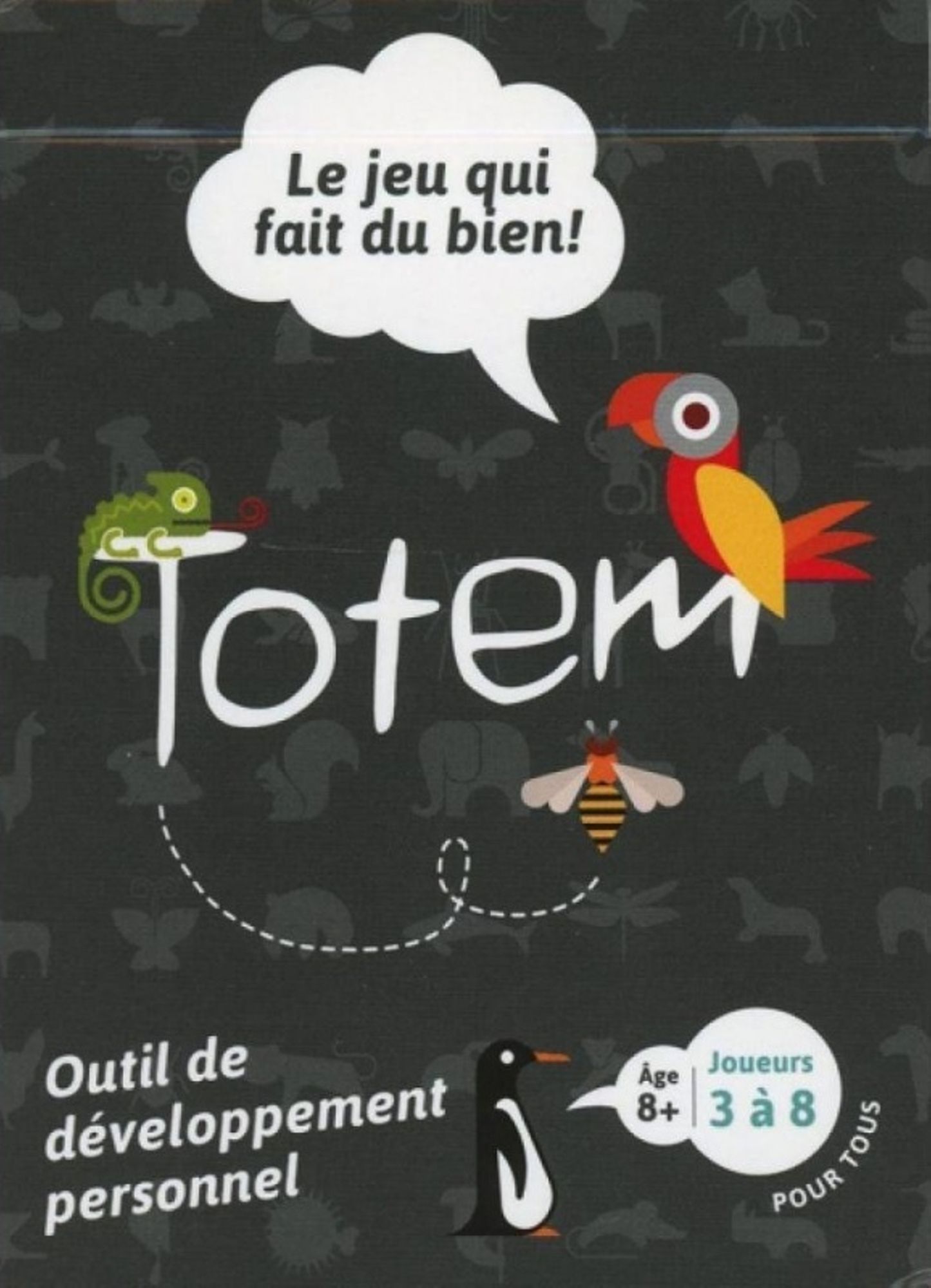 Ce jeu de développement personnel permets de découvrir ses forces et qualités à travers les yeux des autres. À tour de rôle, chaque joueur assiste à la construction dun Totem à son image. Celui-ci est constitué dune carte Animal, associée à une force, et dune carte Qualité, toutes deux choisies et décrites par les autres joueurs à partir des cartes quils ont en main.