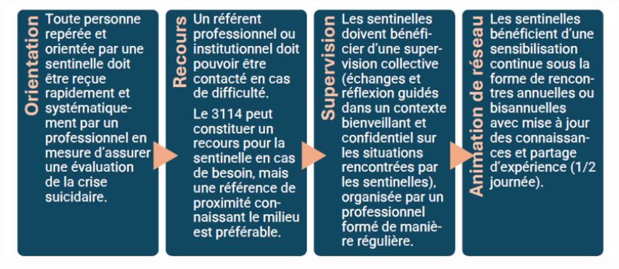 Plus qu’une simple formation, le module Sentinelle participe d’un dispositif de prévention plus large dit « dispositif Sentinelle » : le déploiement d’un réseau d’acteurs volontaires spécialement identifiés, formés et accompagnés.