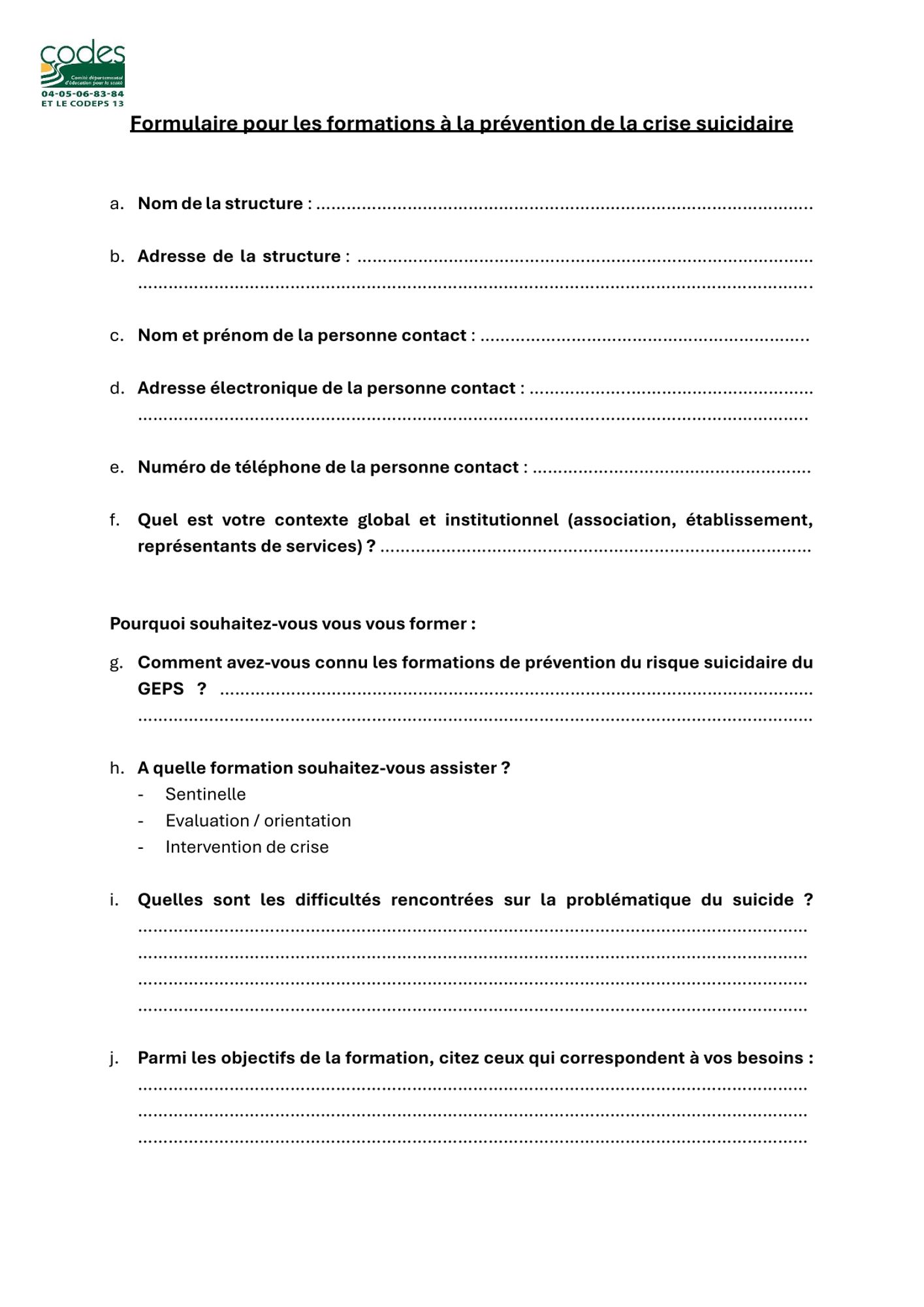 Augmenter la capacité d’une organisation ou d’un territoire à repérer, promouvoir et faciliter l’accès aux soins des personnes en crise suicidaire. En plus de renforcer leurs capacités à repérer les signes d’alerte