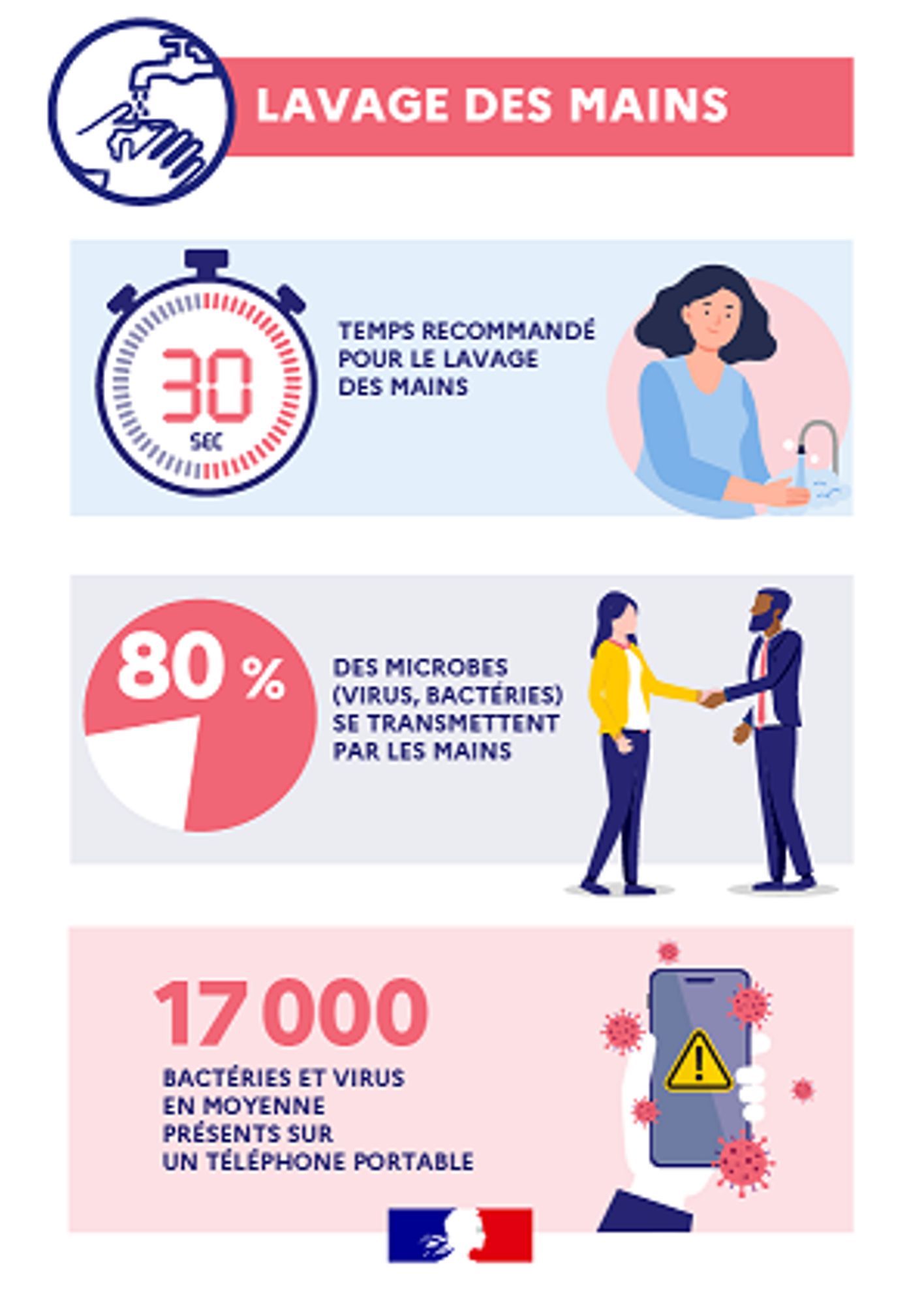 - Se laver les mains régulièrement avec du savon ou les désinfecter avec une solution hydroalcoolique, en particulier après avoir été en contact avec des surfaces partagées (transports en commun, poignées de porte, terminaux de paiement, etc.).
