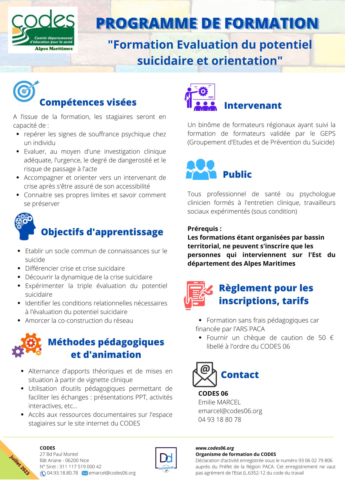 - Intégrer le réseau de prévention de la crise suicidaire de la région PACA en s’inscrivant sur l’Agora Social Club, espace collaboratif de l'Agence Régionale de Santé PACA https://www.asc.paca.sante.fr (une présentation sera faite lors des formations)
