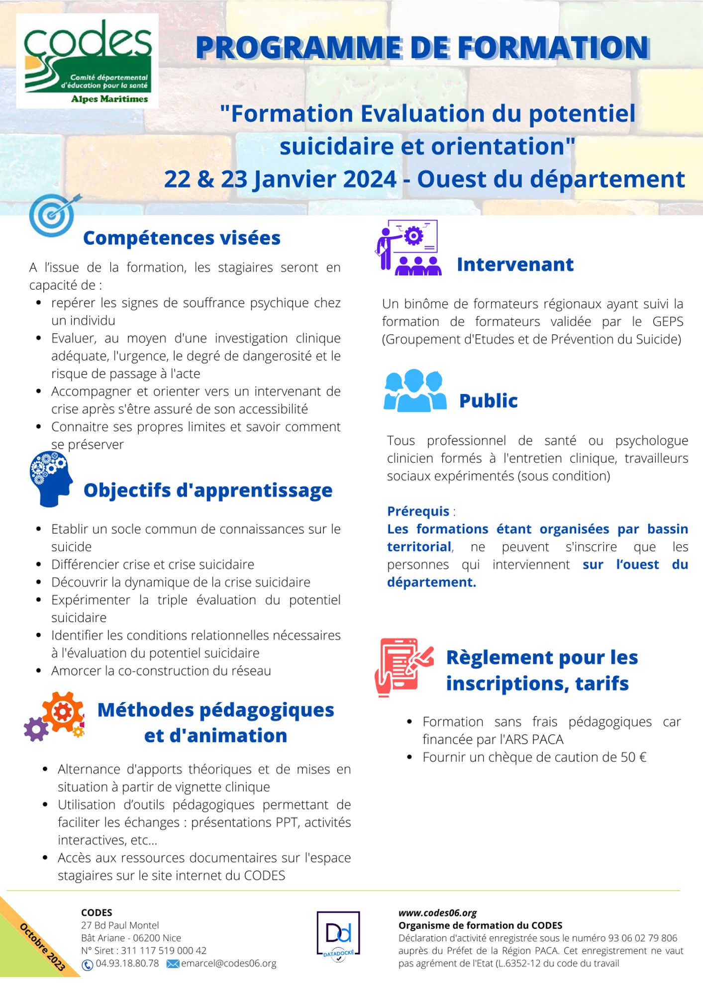 Evaluation du potentiel suicidaire et orientation - Ouest département AM