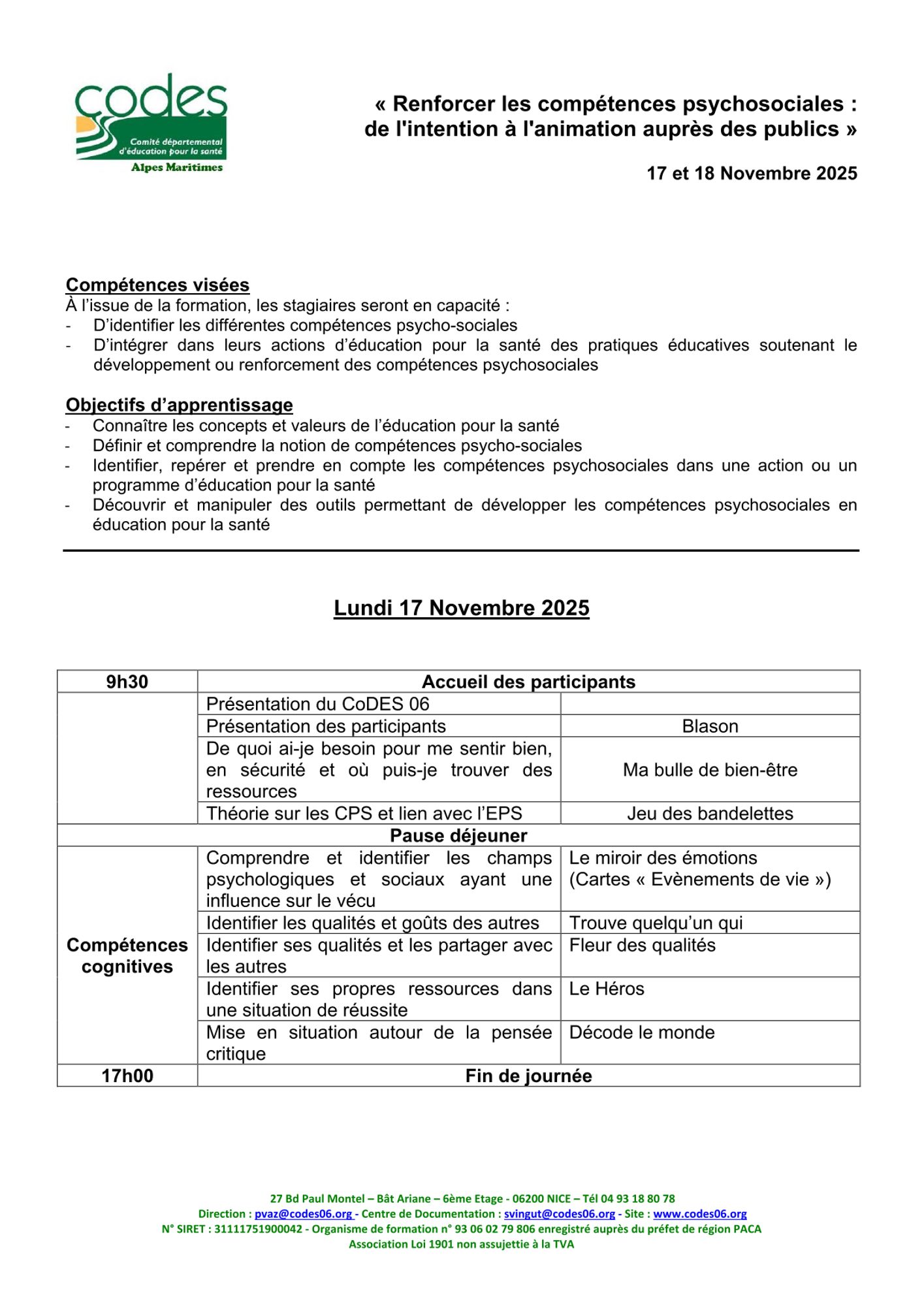 2 jours de formation, 17 et 18 Novembre 2025 -Antibes
