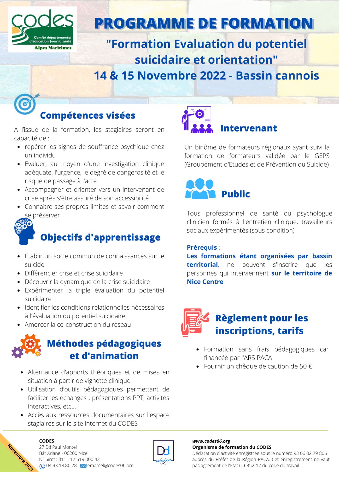 - Au plus tard 7 jours avant le début de la formation je signale au CODES06 les imprévus - annulation, absence, changement de stagiaire.