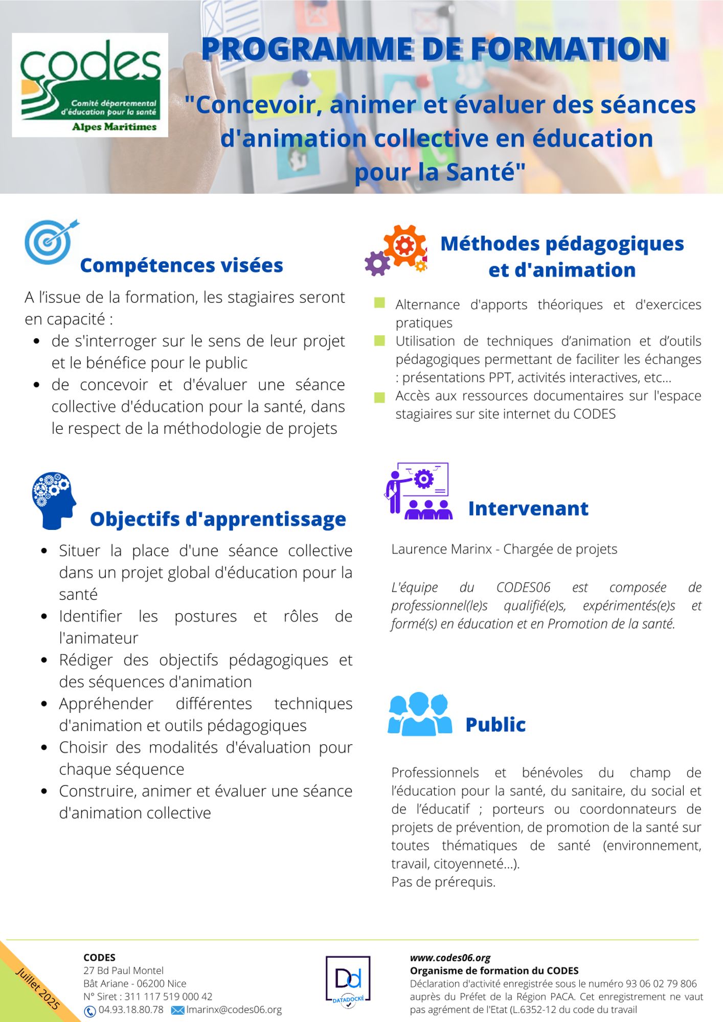 - de concevoir et d'évaluer une séance collective d'éducation pour la santé, dans le respect de la méthodologie de projets