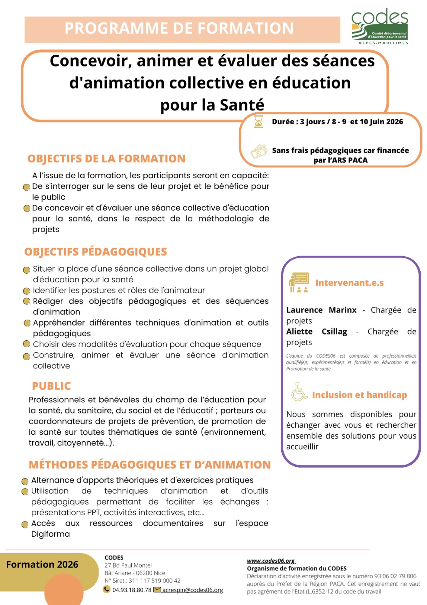La formation est financée par l’Agence Régionale de santé PACA.