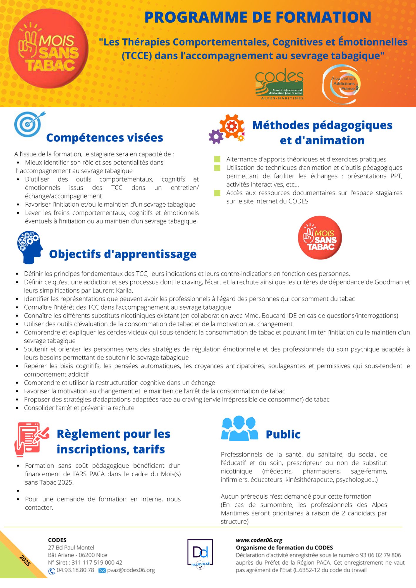 Formation sans coût pédagogique bénéficiant d’un financement de l’ARS PACA dans le cadre du Mois(s) sans Tabac 2025.